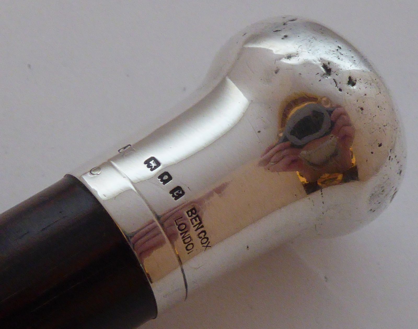 Walking Stick Cane 1920 Hallmarked Solid Silver Pommel Coromandel Wood Shaft