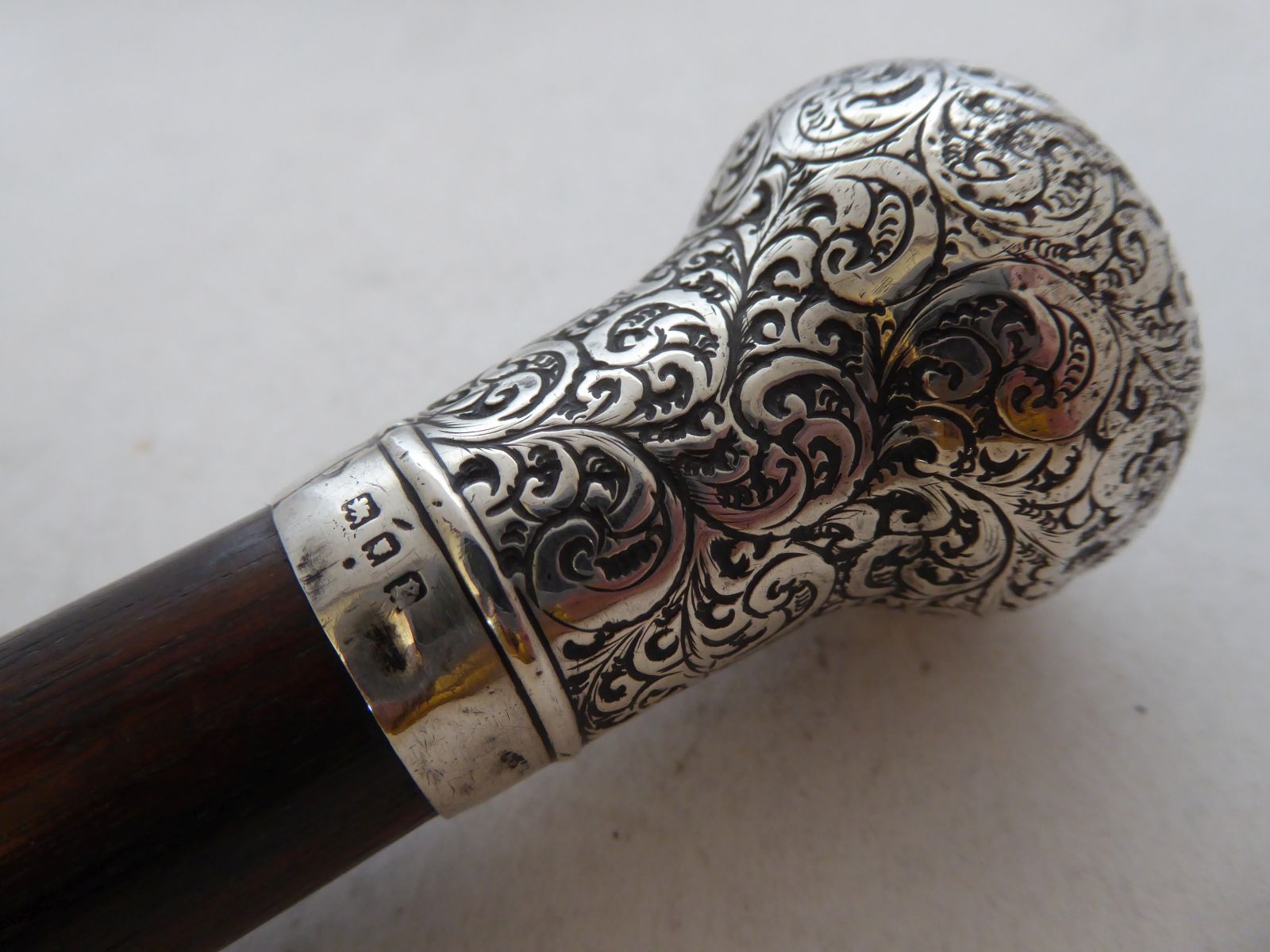 Walking Stick Cane 1920 Hallmarked Solid Silver Pommel Rosewood Shaft
