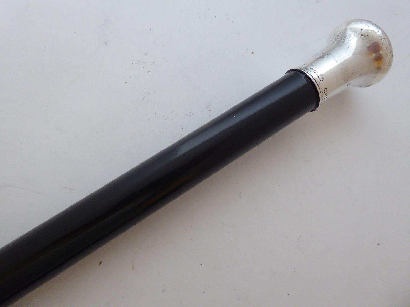 Walking Stick Cane 1921 Hallmarked Solid Silver Pommel Ebony Shaft James Smith