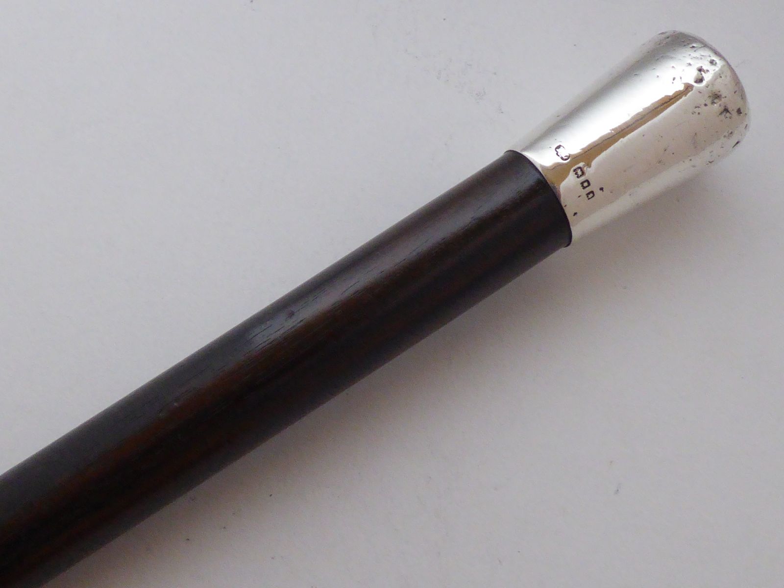 Walking Stick Cane 1921 Hallmarked Solid Silver Pommel Rosewood Shaft Military