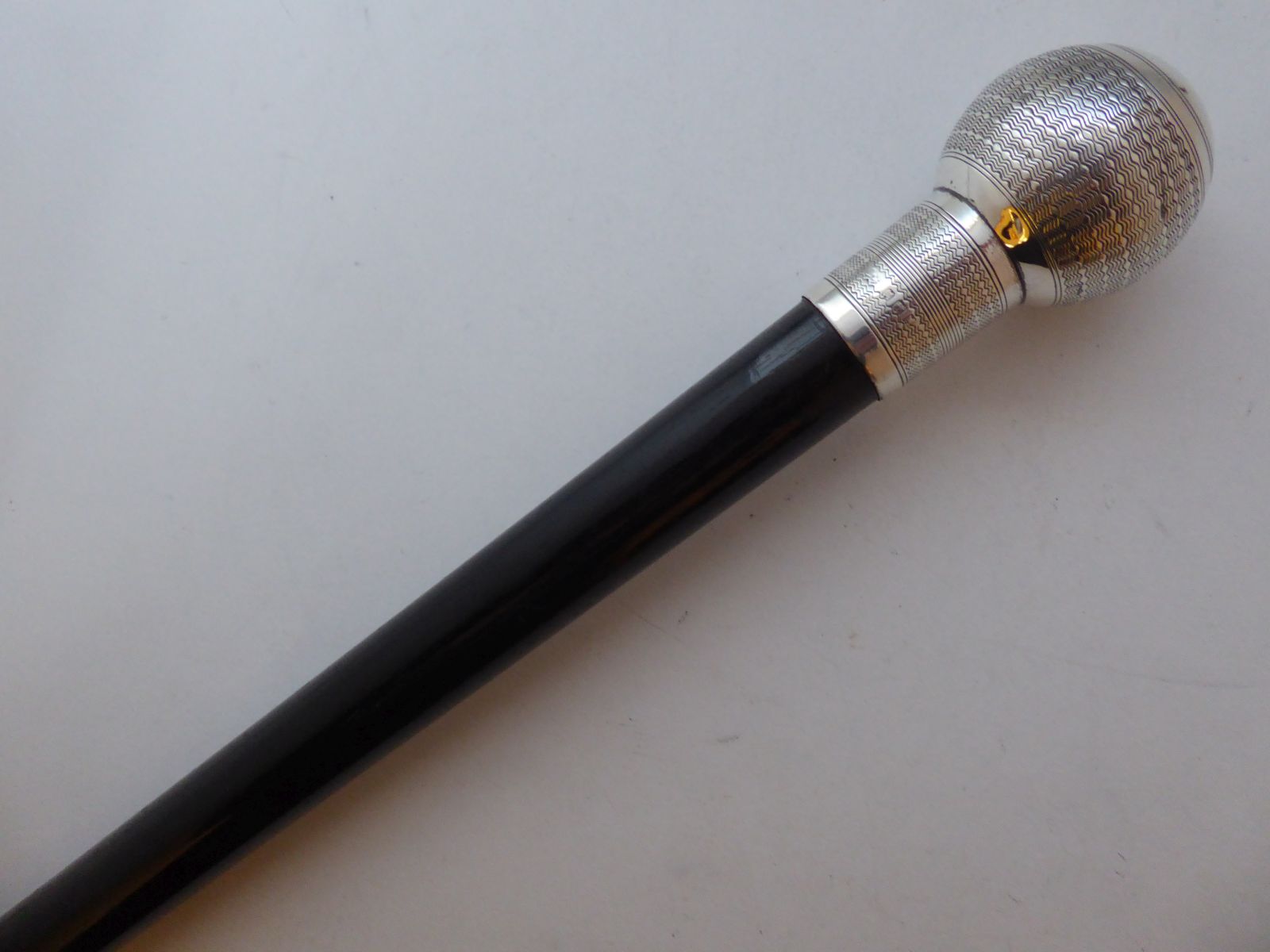 Walking Stick Cane 1922 Hallmarked Solid Silver Pommel Ebony Wood Shaft