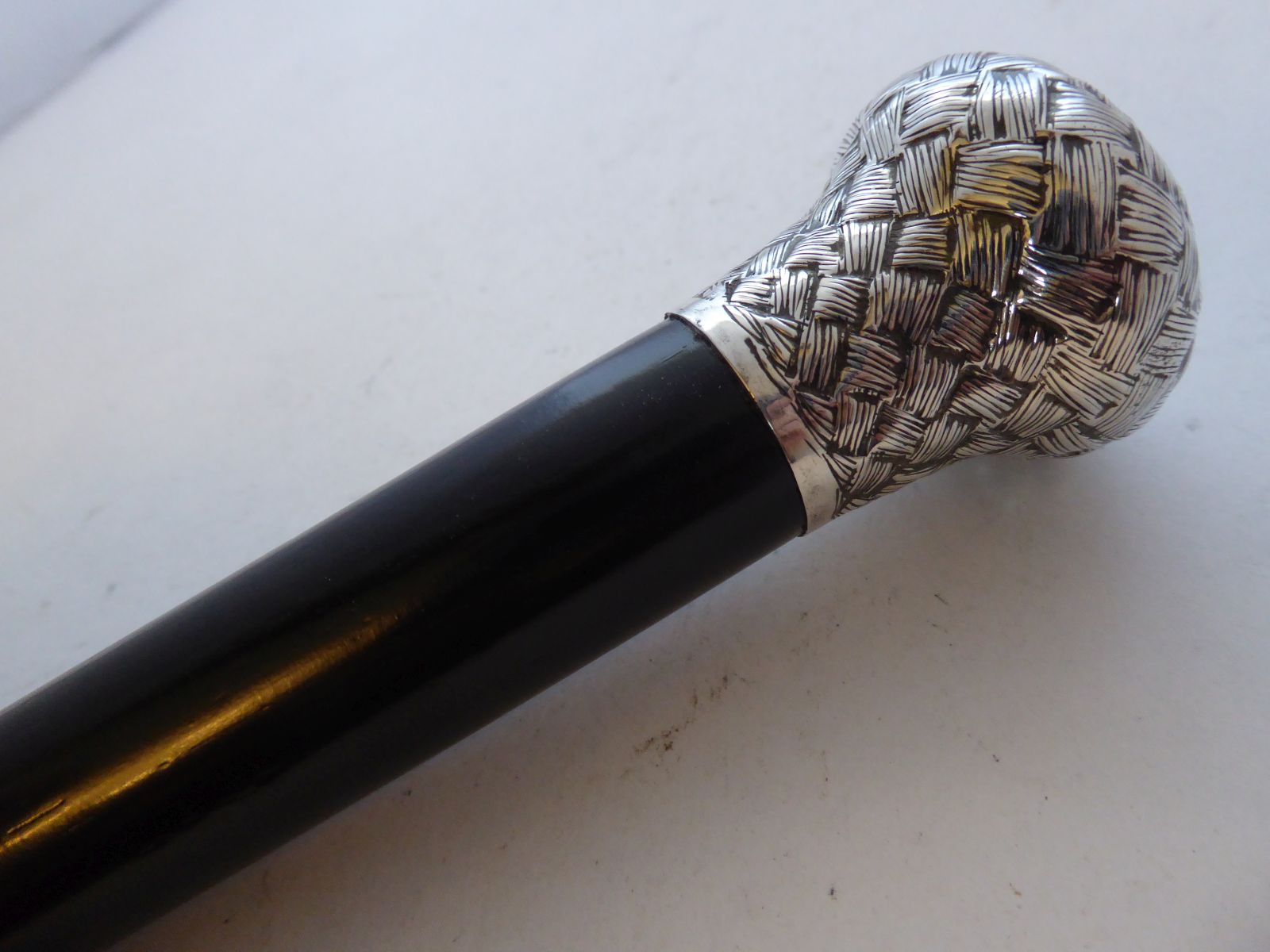 Walking Stick Cane 1922 Hallmarked Solid Silver Pommel Ebony Wood Shaft