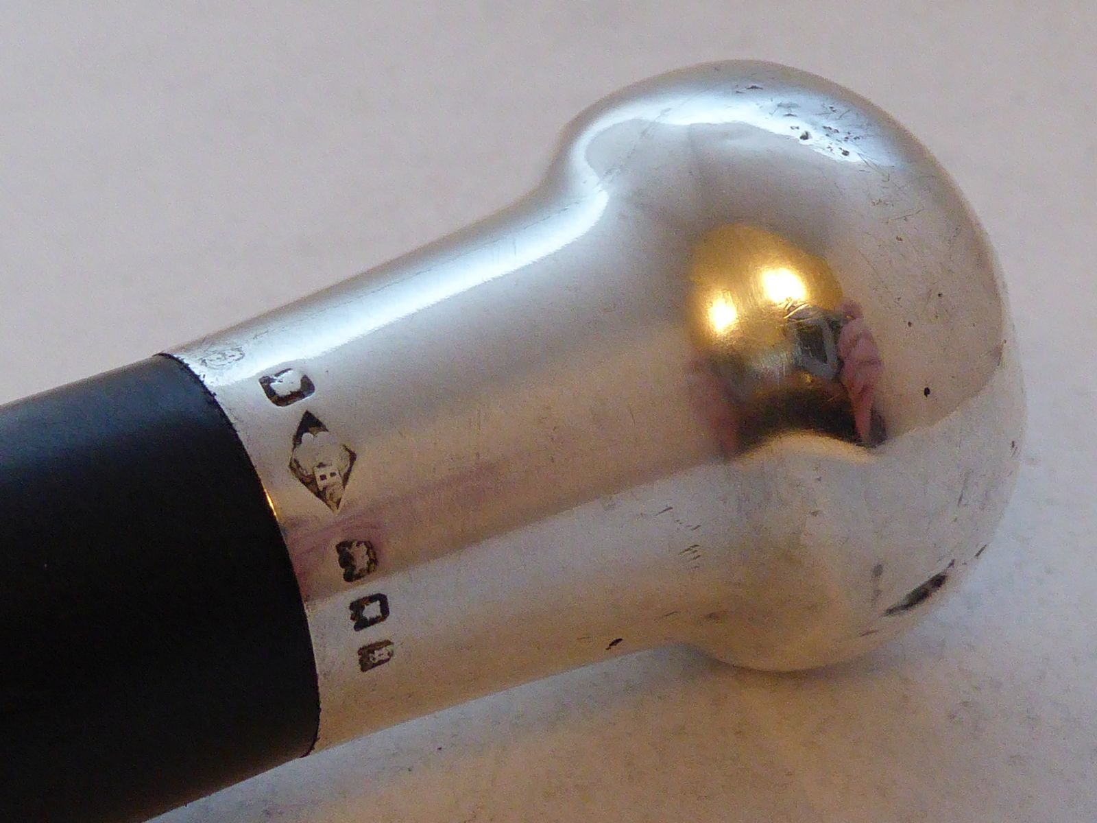 Walking Stick Cane 1922 Hallmarked Solid Silver Pommel Ebony Wood Shaft