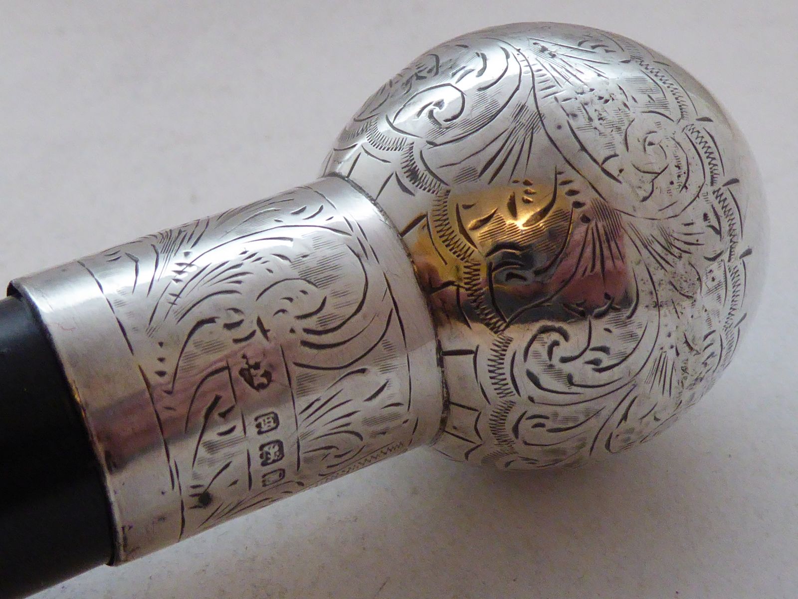 Walking Stick Cane 1922 Hallmarked Solid Silver Pommel Ebony Wood Shaft