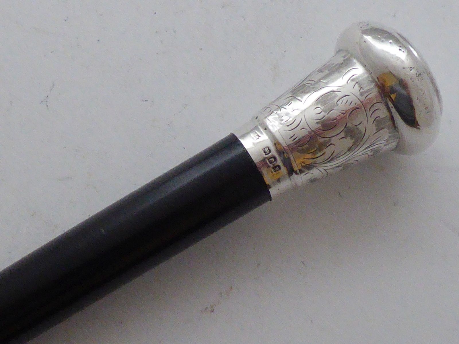 Walking Stick Cane 1922 Hallmarked Solid Silver Pommel Ebony Wood Shaft Robert Pringle