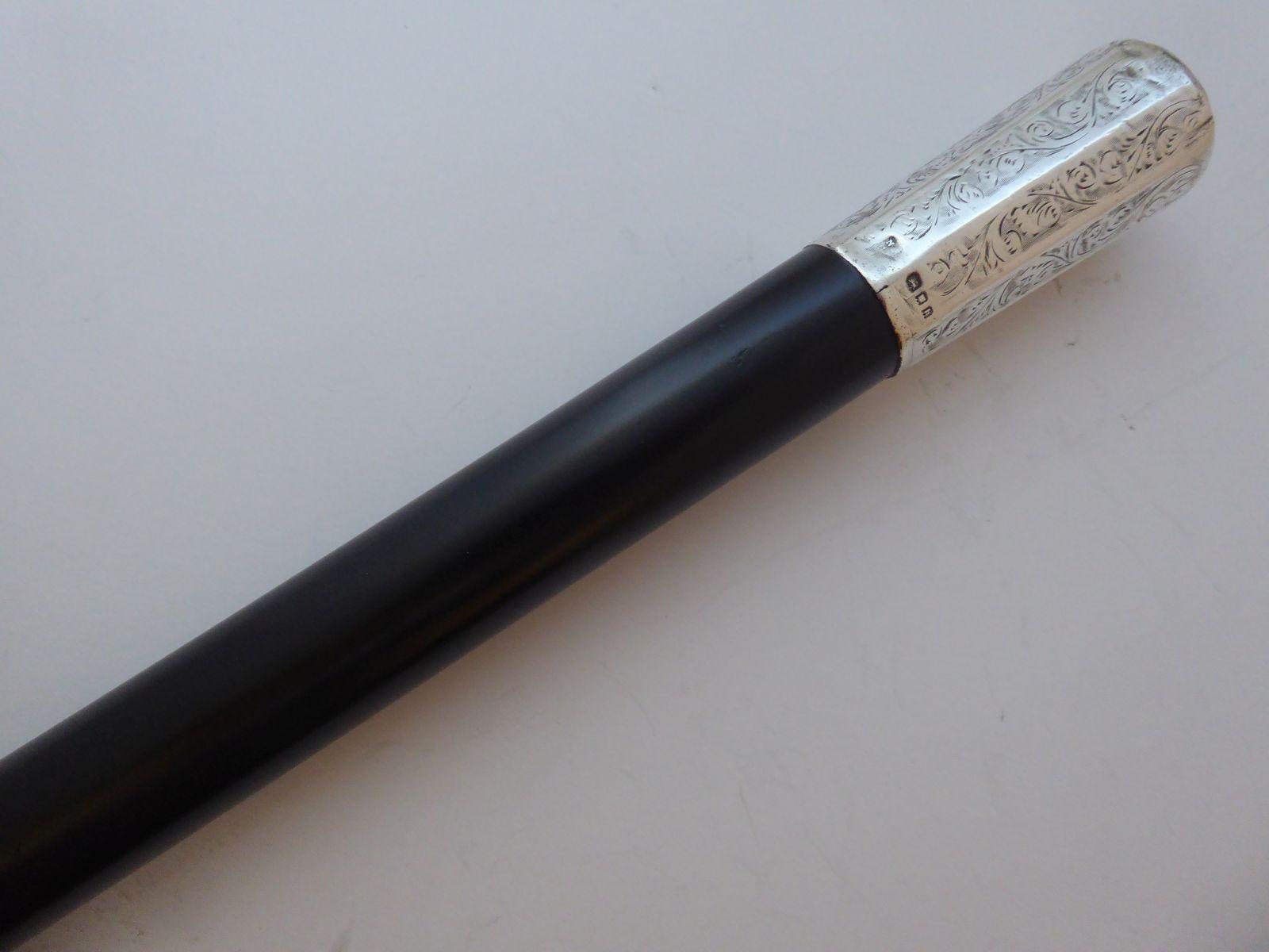 Walking Stick Cane 1923 Hallmarked Solid Silver Pommel Ebony Shaft