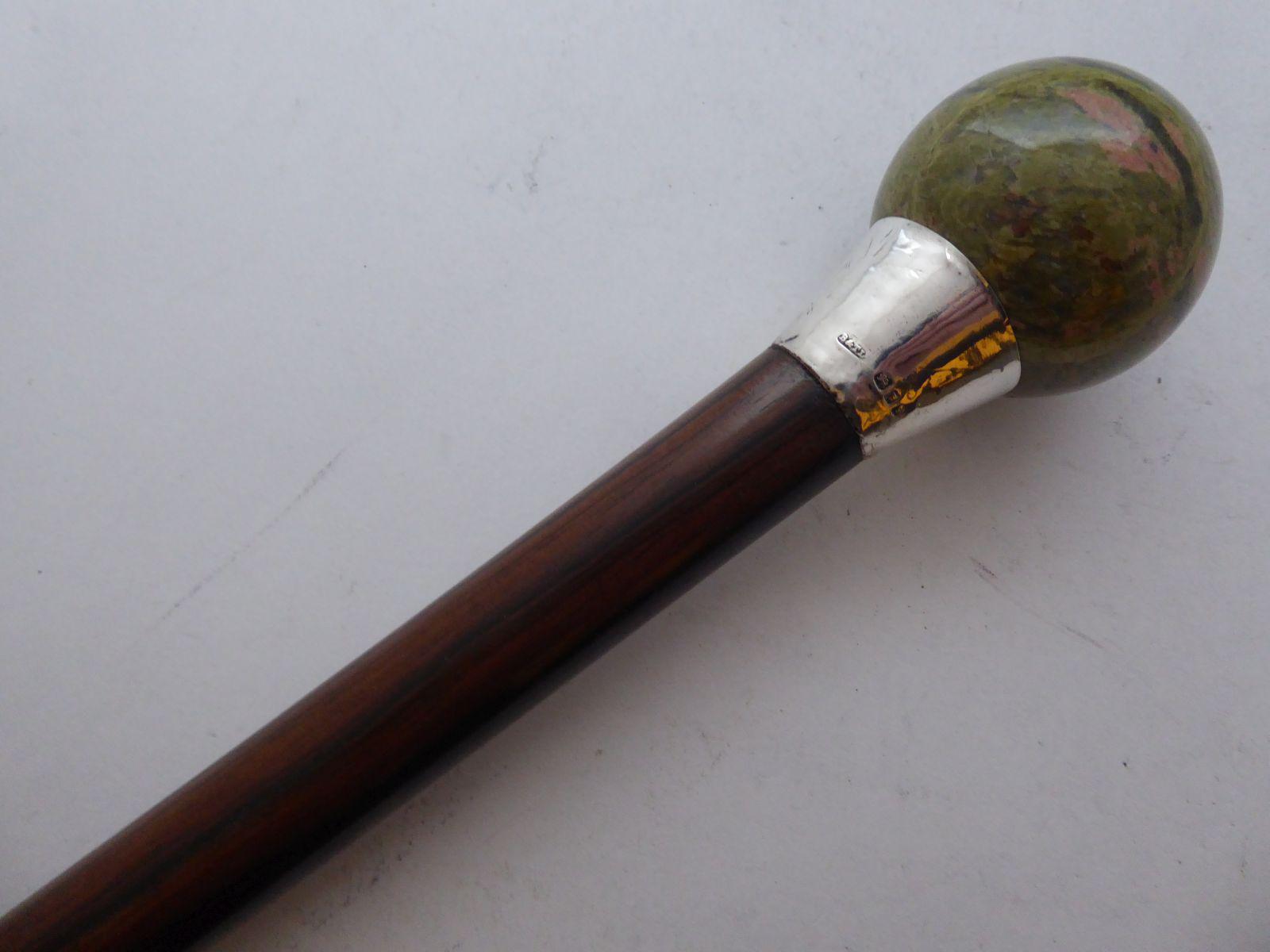 Walking Stick Cane 1924 Hallmarked Solid Silver Collar Agate Rosewood Shaft