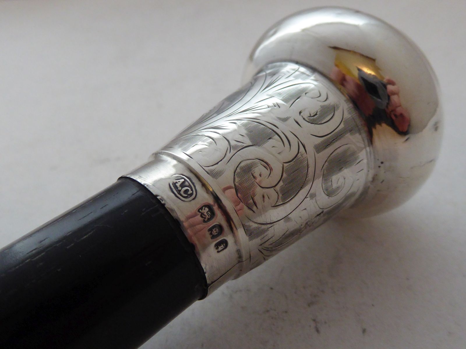 Walking Stick Cane 1924 Hallmarked Solid Silver Pommel Ebony Wood Shaft