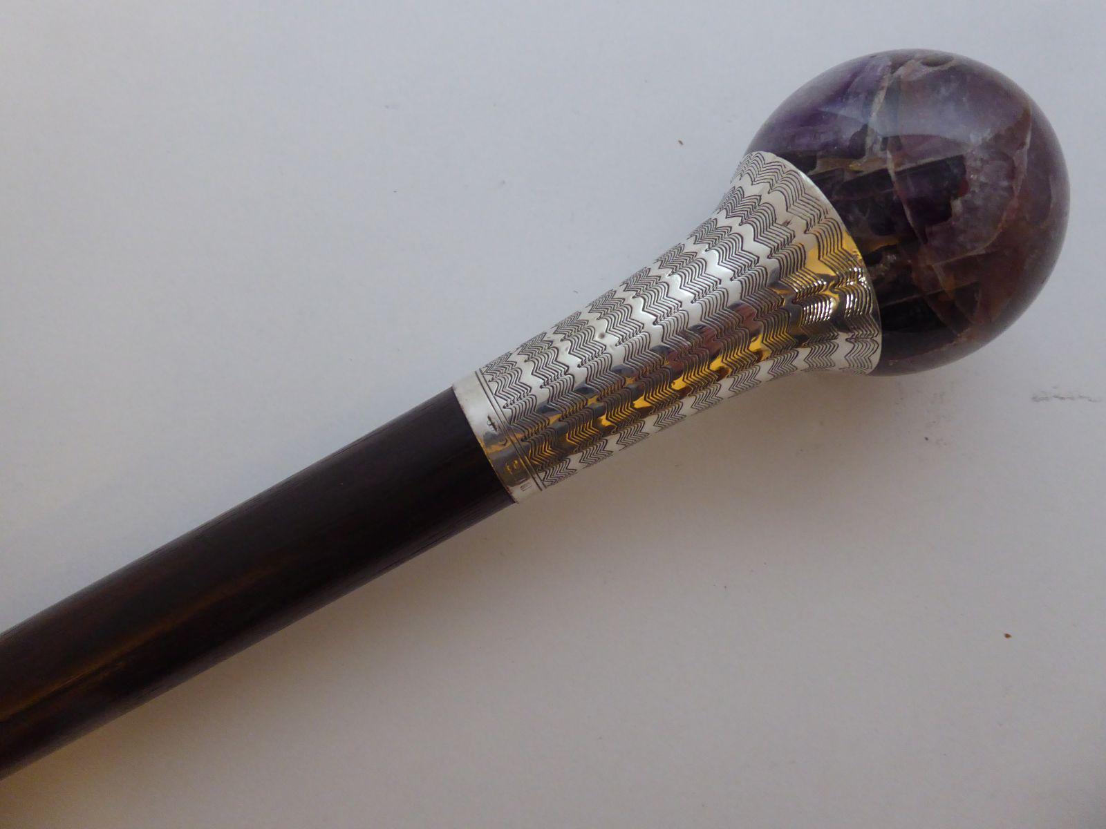 Walking Stick Cane 1925 Hallmarked Solid Silver Collar Rosewood Shaft