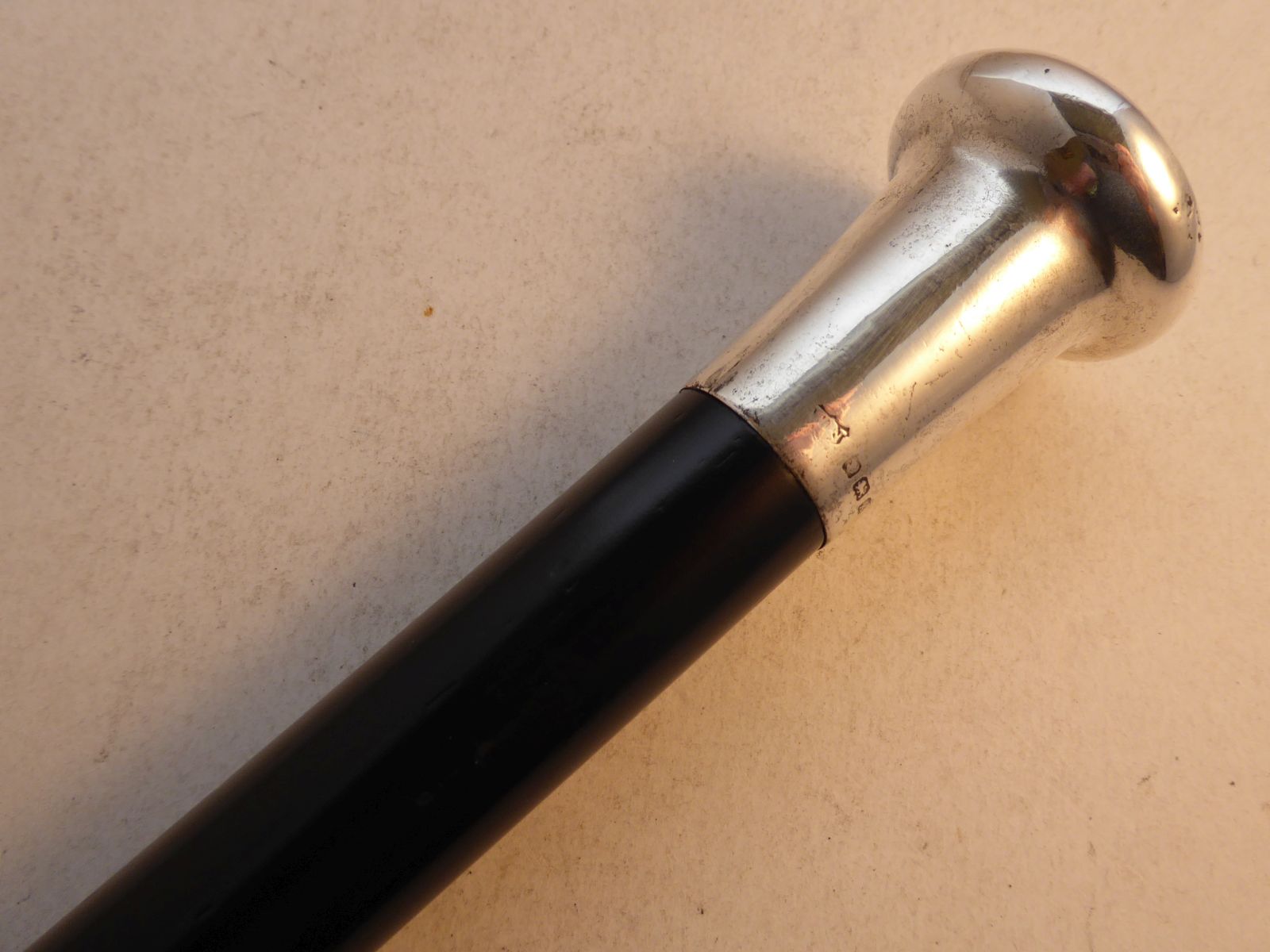 Walking Stick Cane 1925 Hallmarked Solid Silver Pommel Long Ebony Shaft
