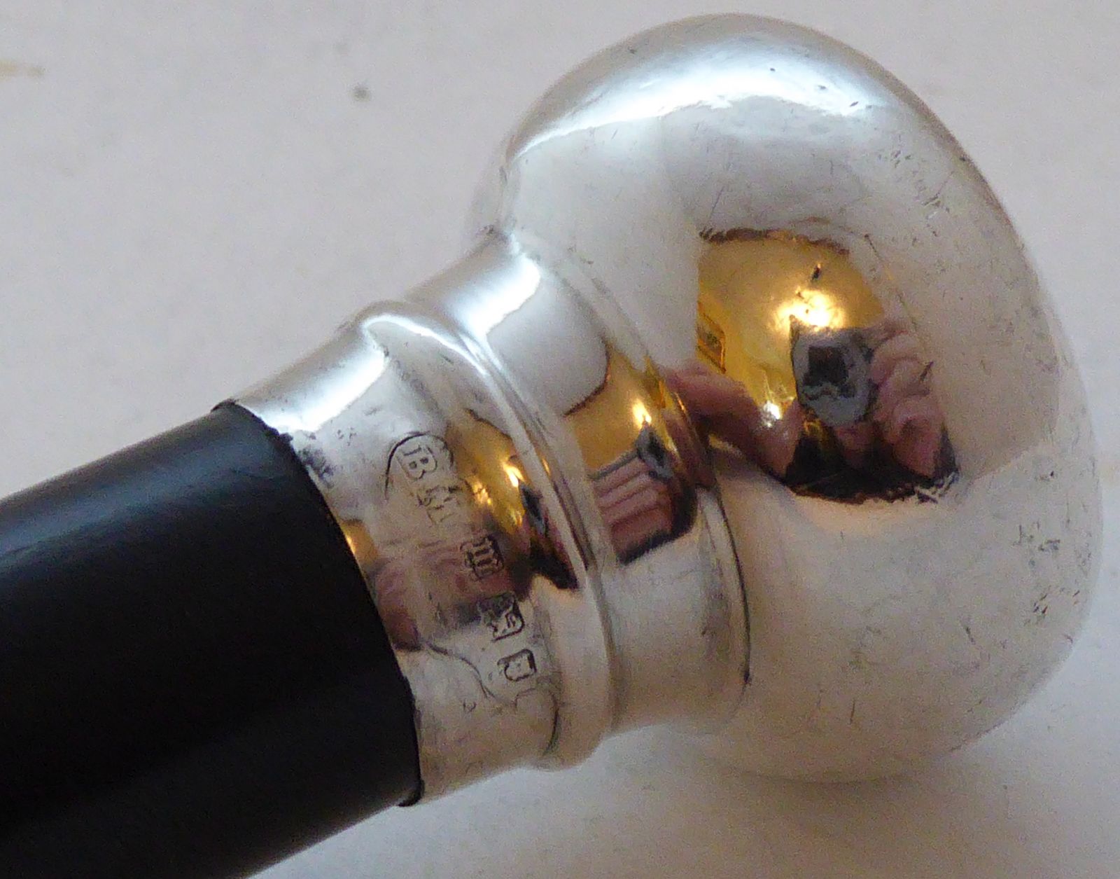 Walking Stick Cane 1927 Hallmarked Solid Silver Pommel Ebonised Wood Shaft