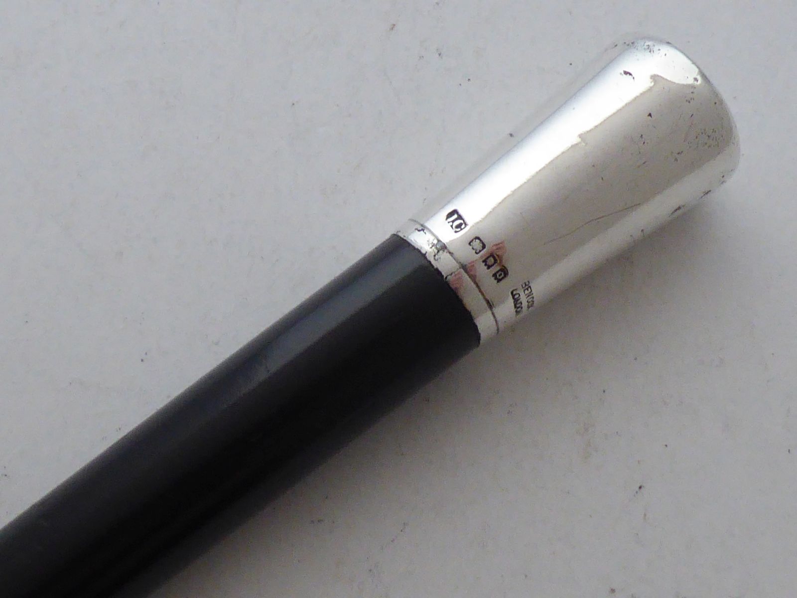 Walking Stick Cane 1929 Hallmarked Silver Pommel Ebony Shaft Benjamin Cox