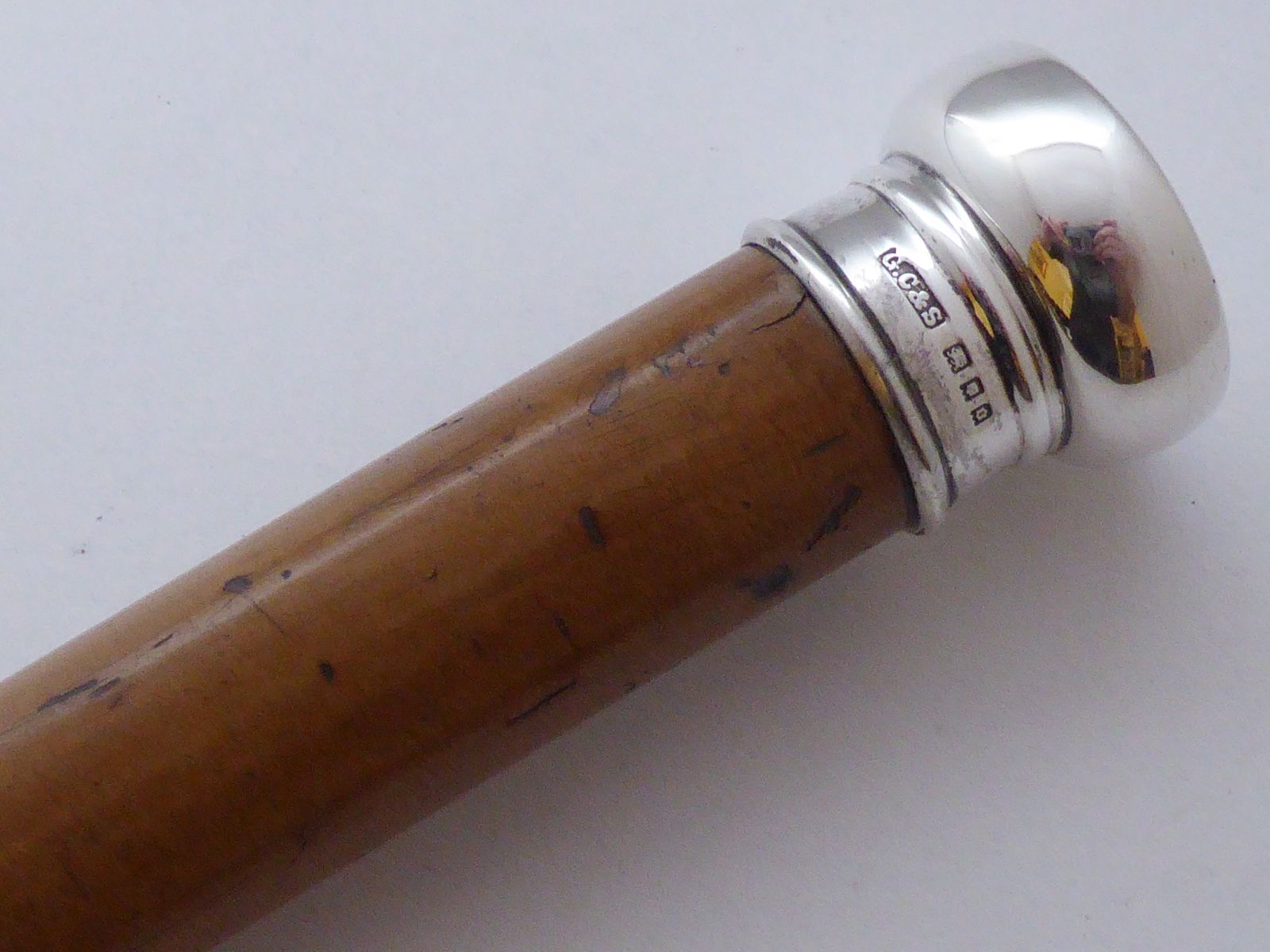 Walking Stick Cane 1929 Hallmarked Solid Silver Pommel Malacca Wood Shaft