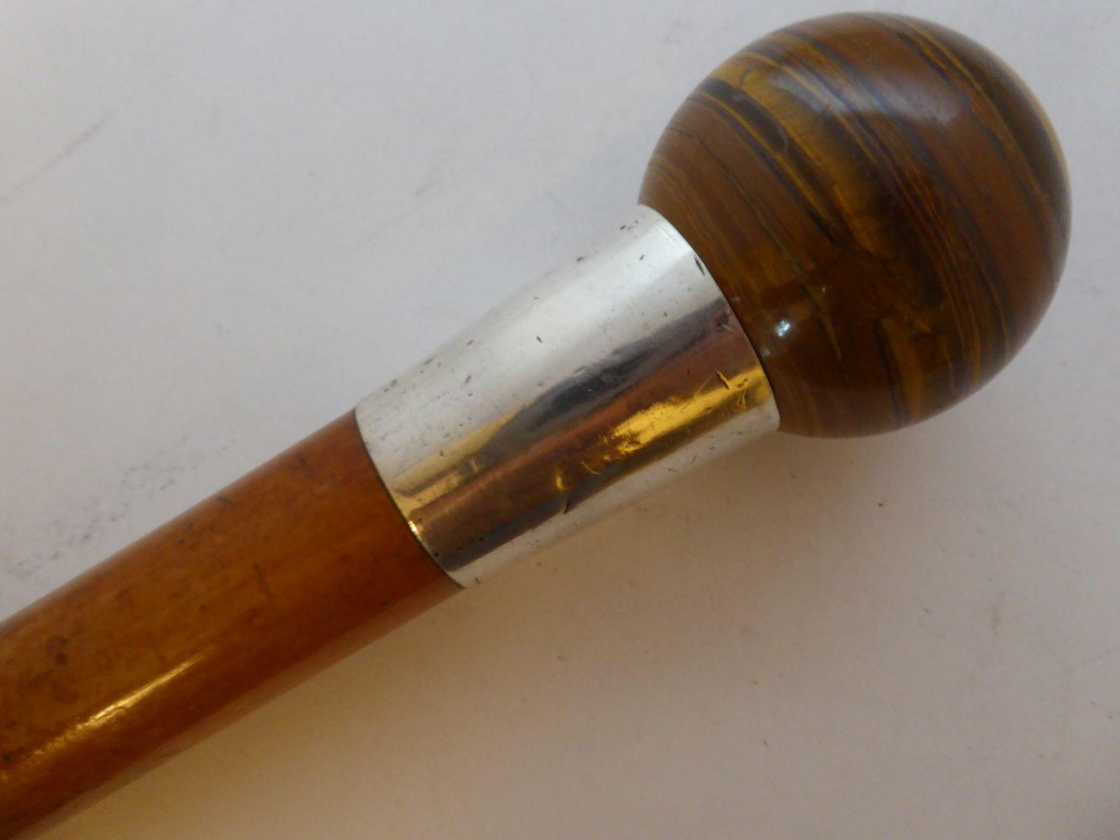 Walking Stick Cane 925 Solid Silver Pommel Malacca Wood Shaft c.1890