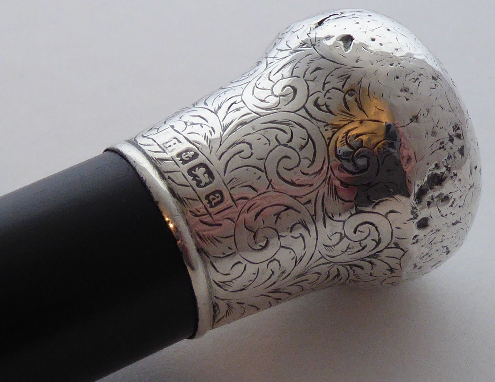 Walking Stick Cane Birmingham 1900 Hallmarked Solid Silver Pommel Ebony Wood Shaft