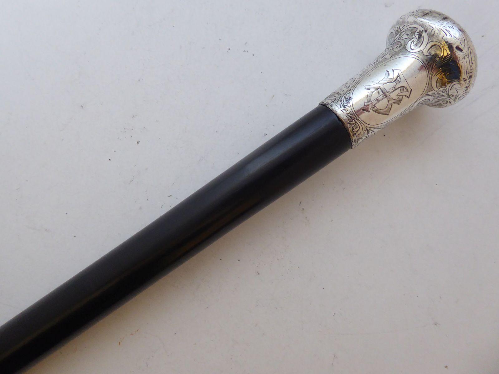 Walking Stick Cane Chester 1918 Hallmarked Solid Silver Pommel Ebony Shaft