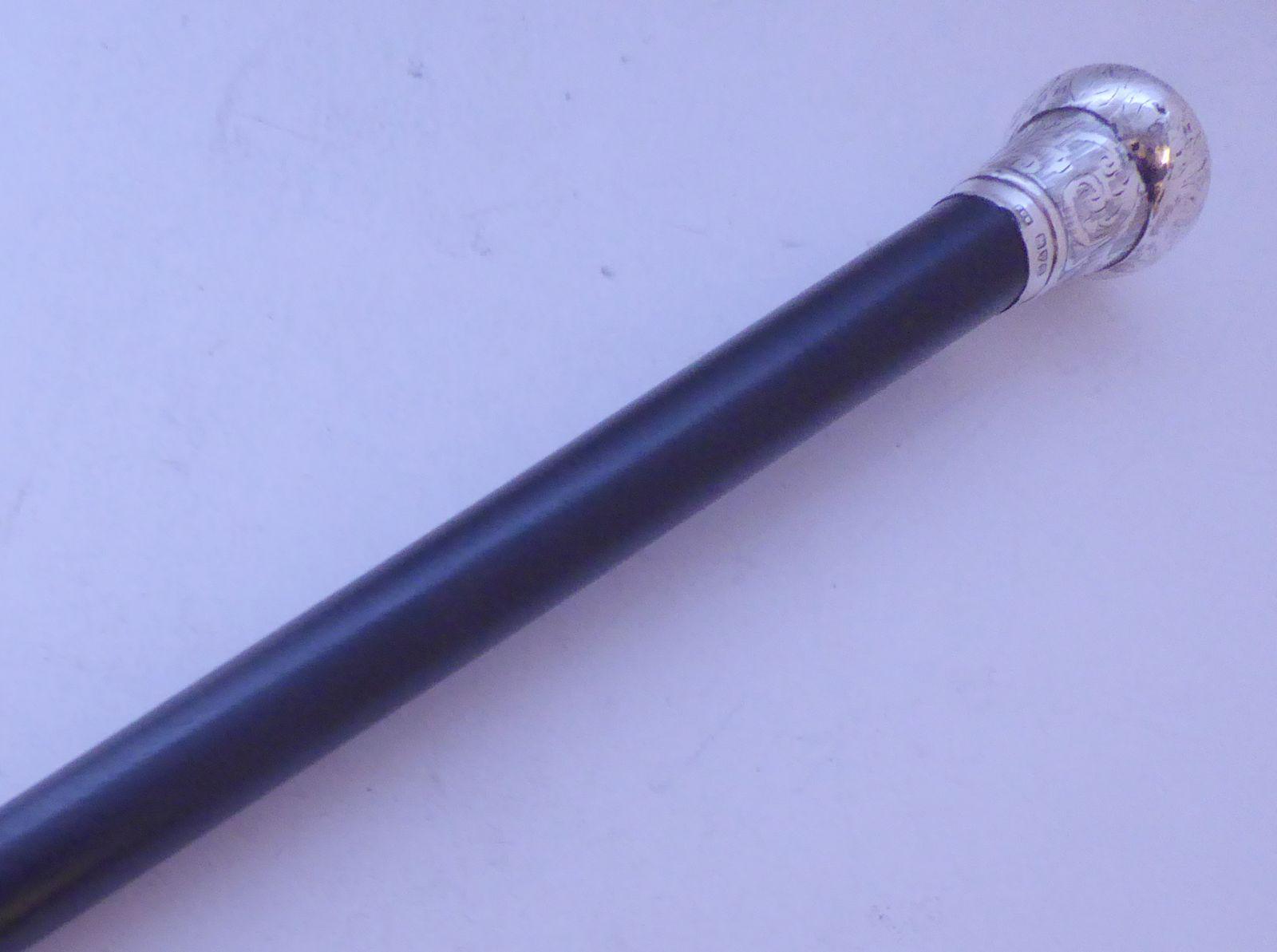 Walking Stick Cane Chester 1919 Hallmarked Solid Silver Pommel Ebony Wood Shaft