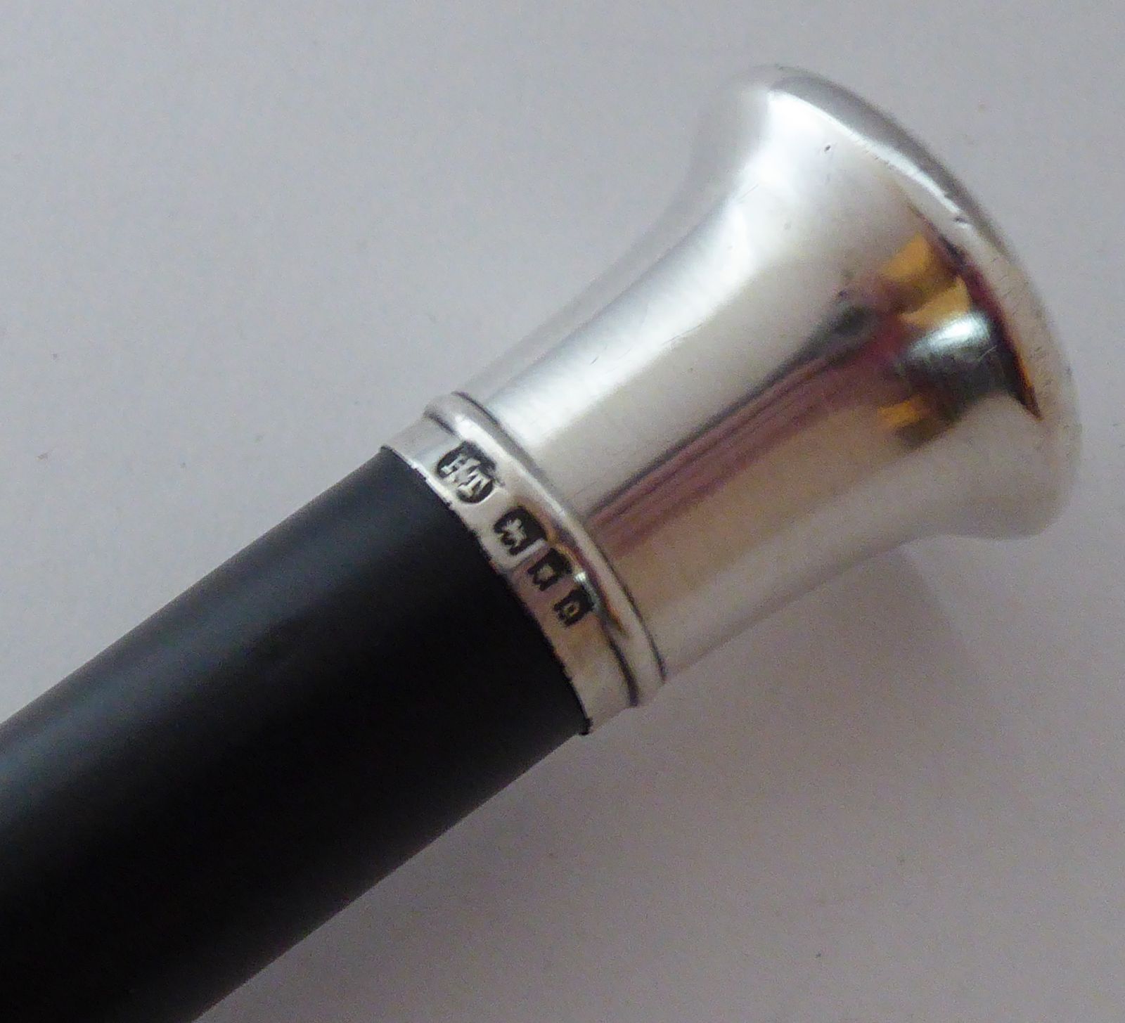Walking Stick Cane Hallmarked 1919 Solid Silver Pommel Ebonised Wood Shaft