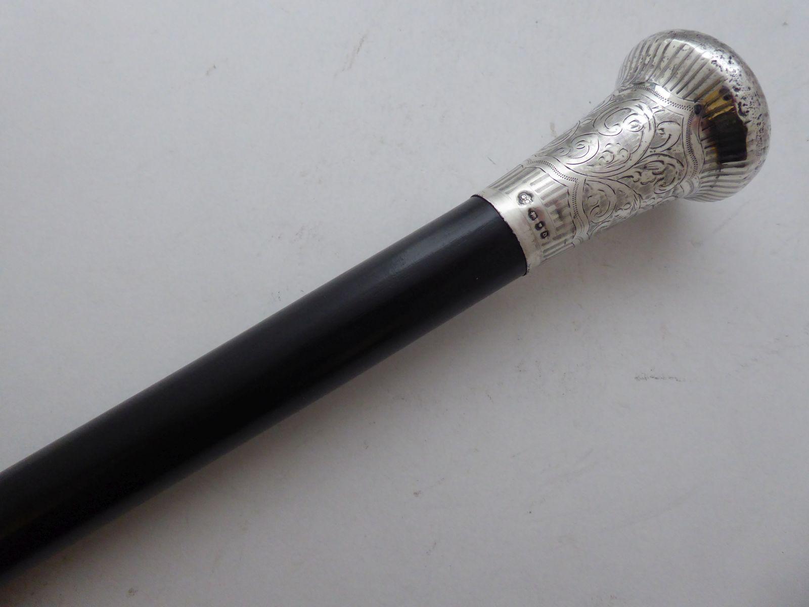 Walking Stick Cane Hallmarked 1919 Solid Silver Pommel Ebony Wood Shaft
