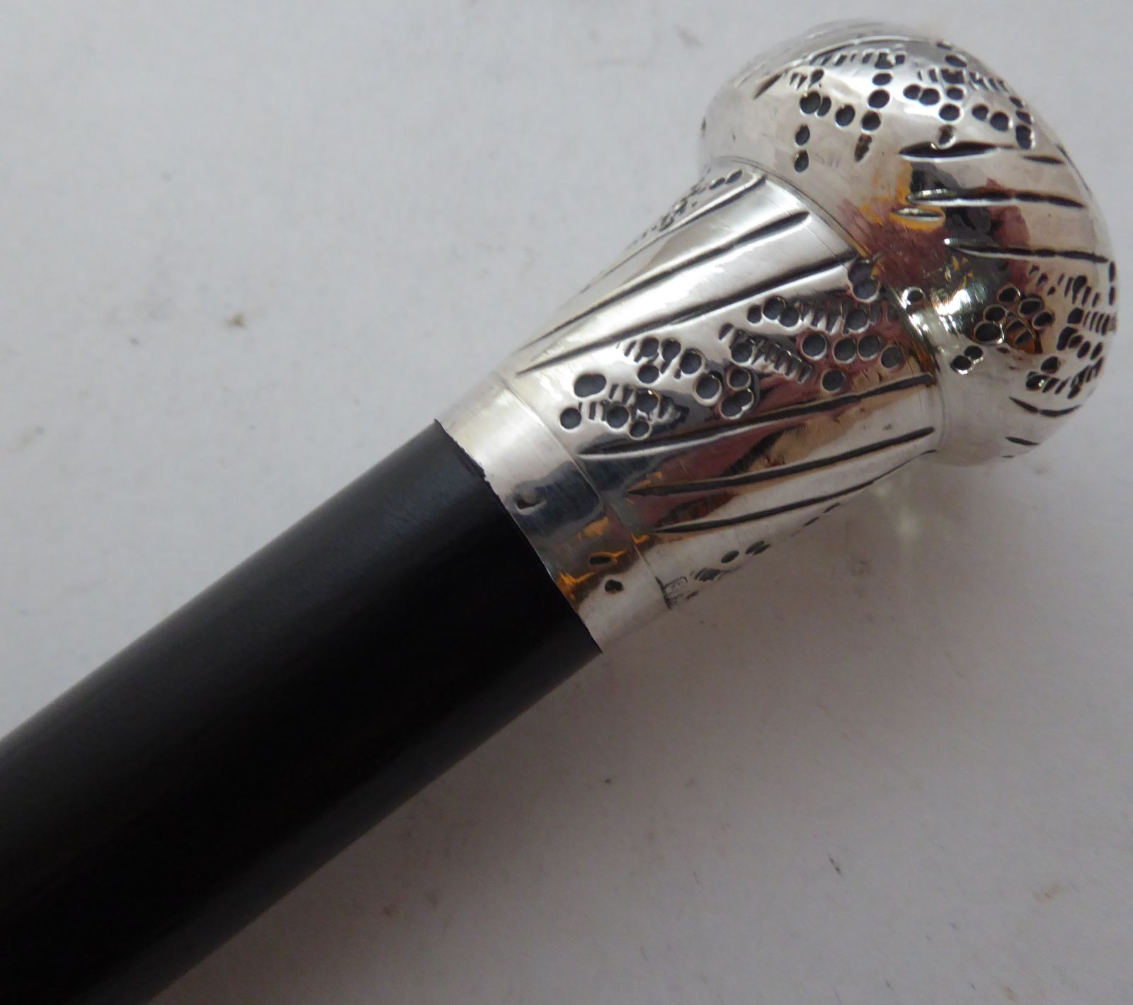 Walking Stick Cane Hallmarked 1924 Solid Silver Pommel Ebonised Wood Shaft