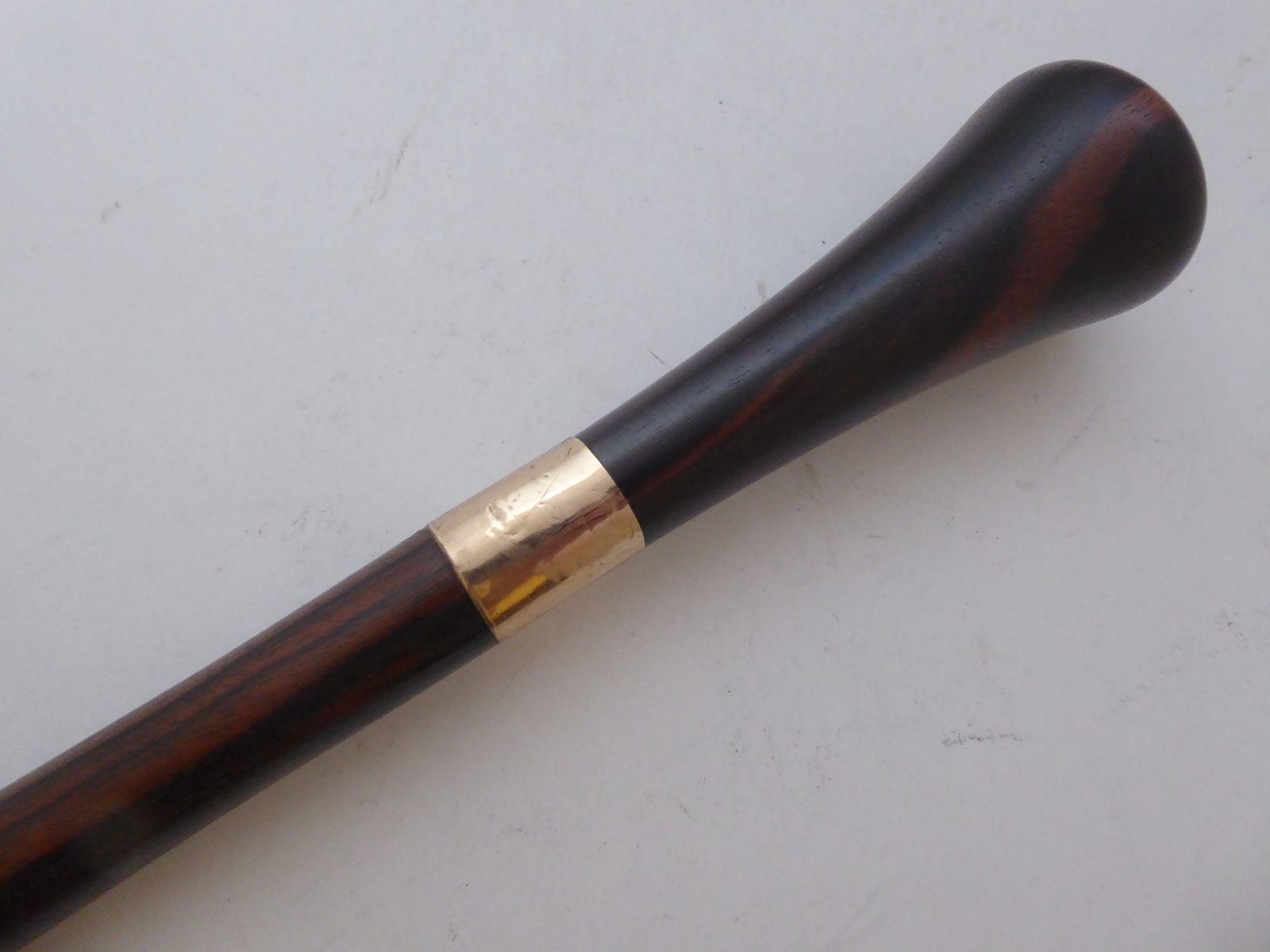Walking Stick Cane Hallmarked Solid 12ct Gold Collar Macassar Ebony Shaft