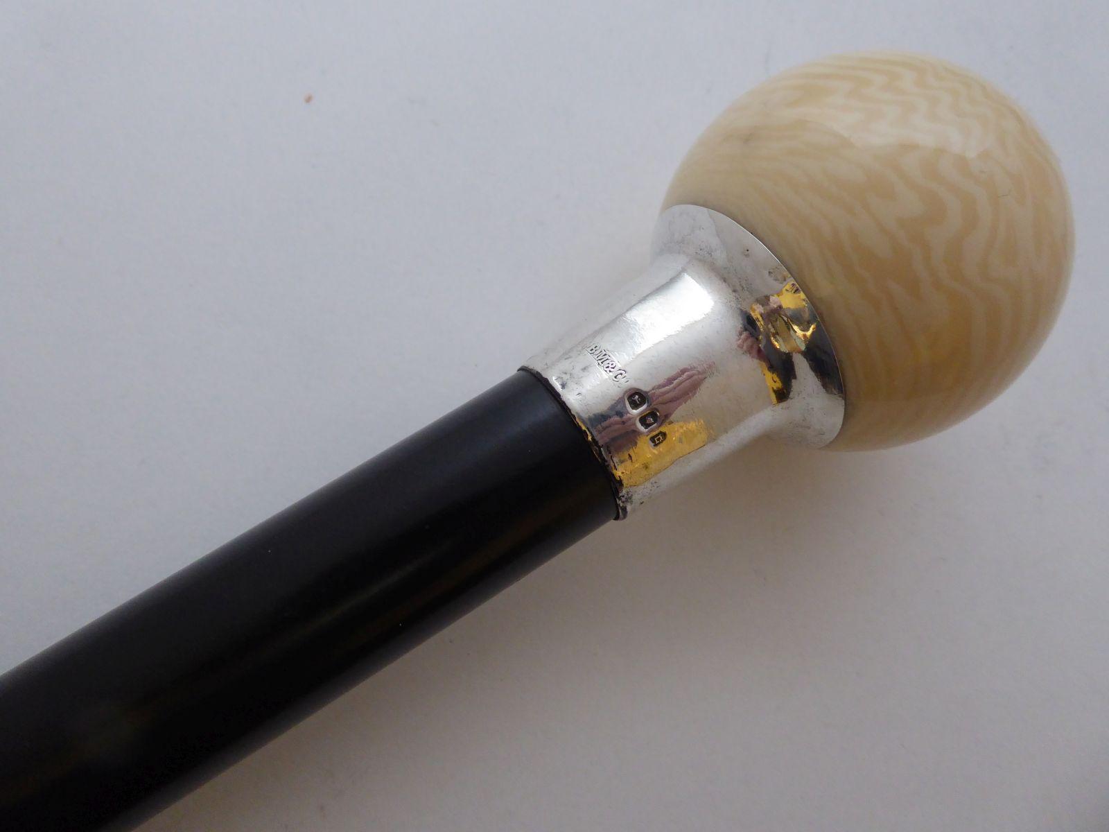 Walking Stick Cane Hallmarked Solid Silver Collar Tagua Nut Pommel Ebony Shaft