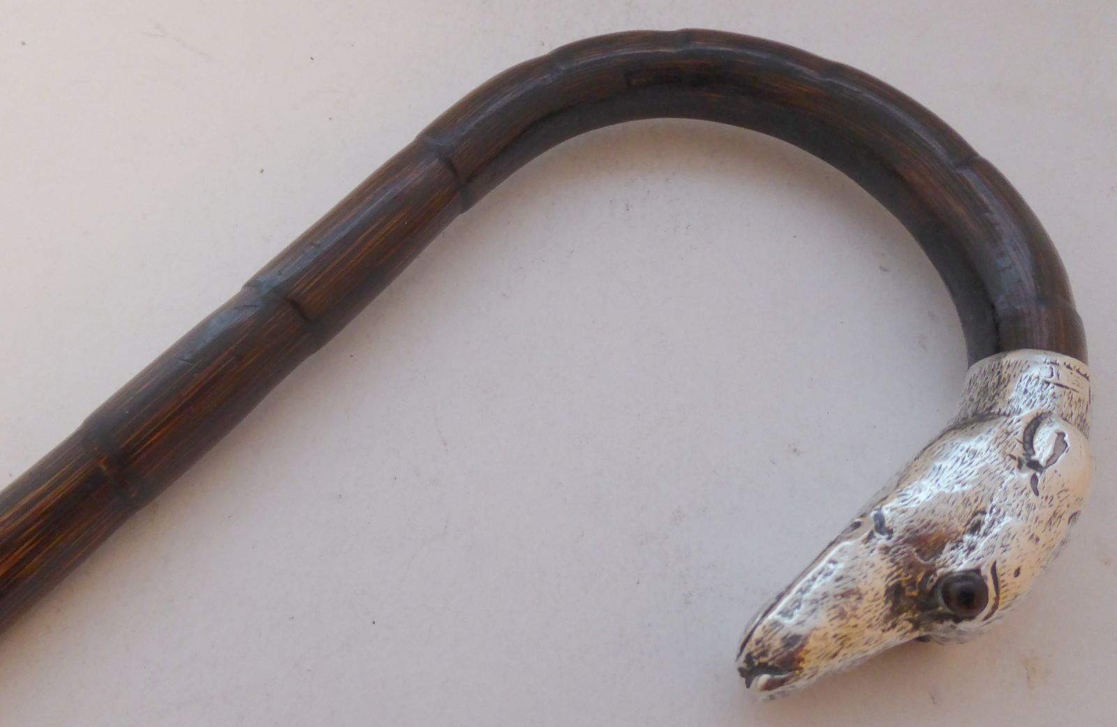 Walking Stick Cane Hallmarked Solid Silver Greyhound Dog Head Partridge Wood Shaft