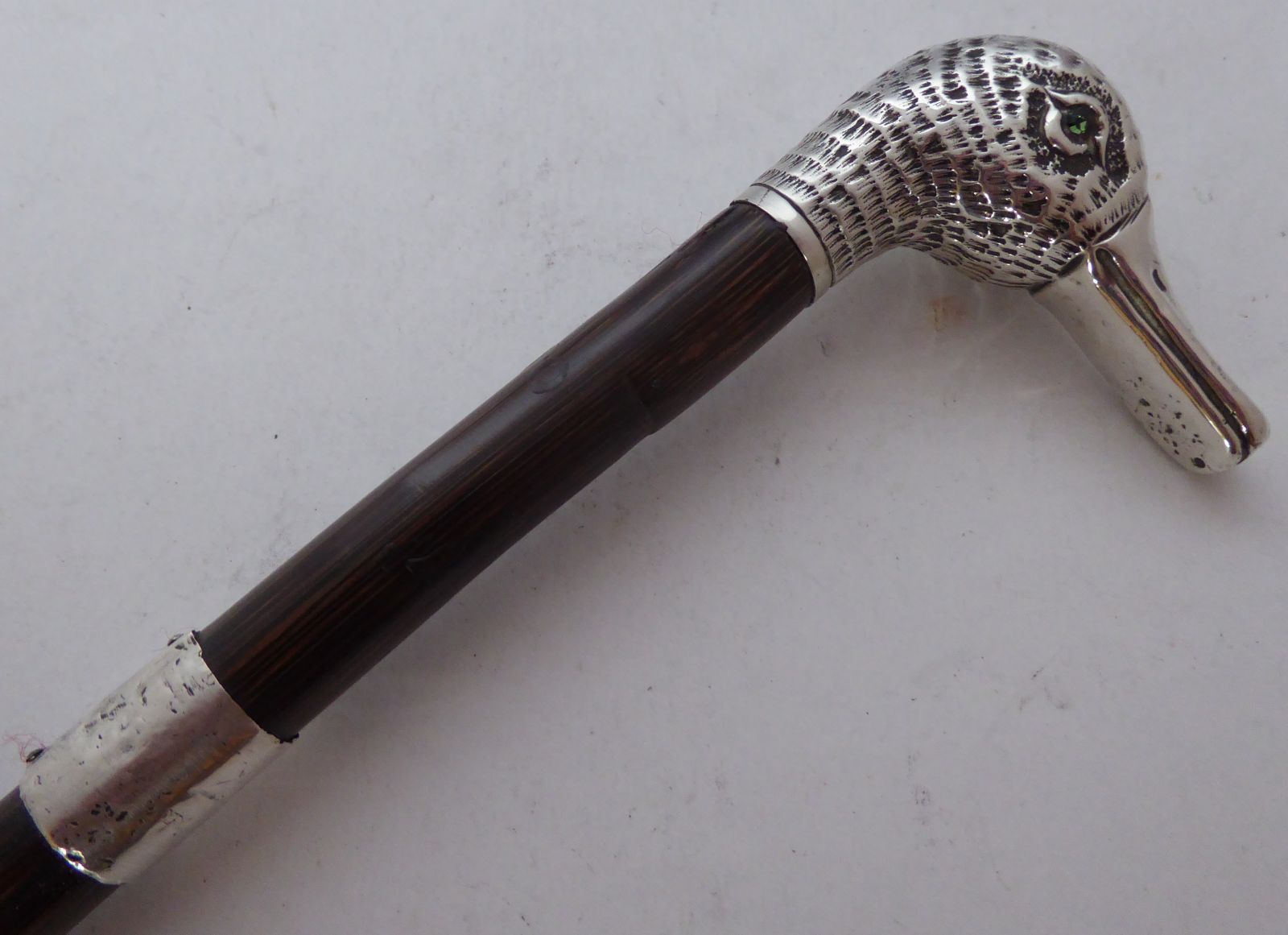 Walking Stick Cane London 1899 Solid Silver Duck Pommel Partridge Wood Shaft