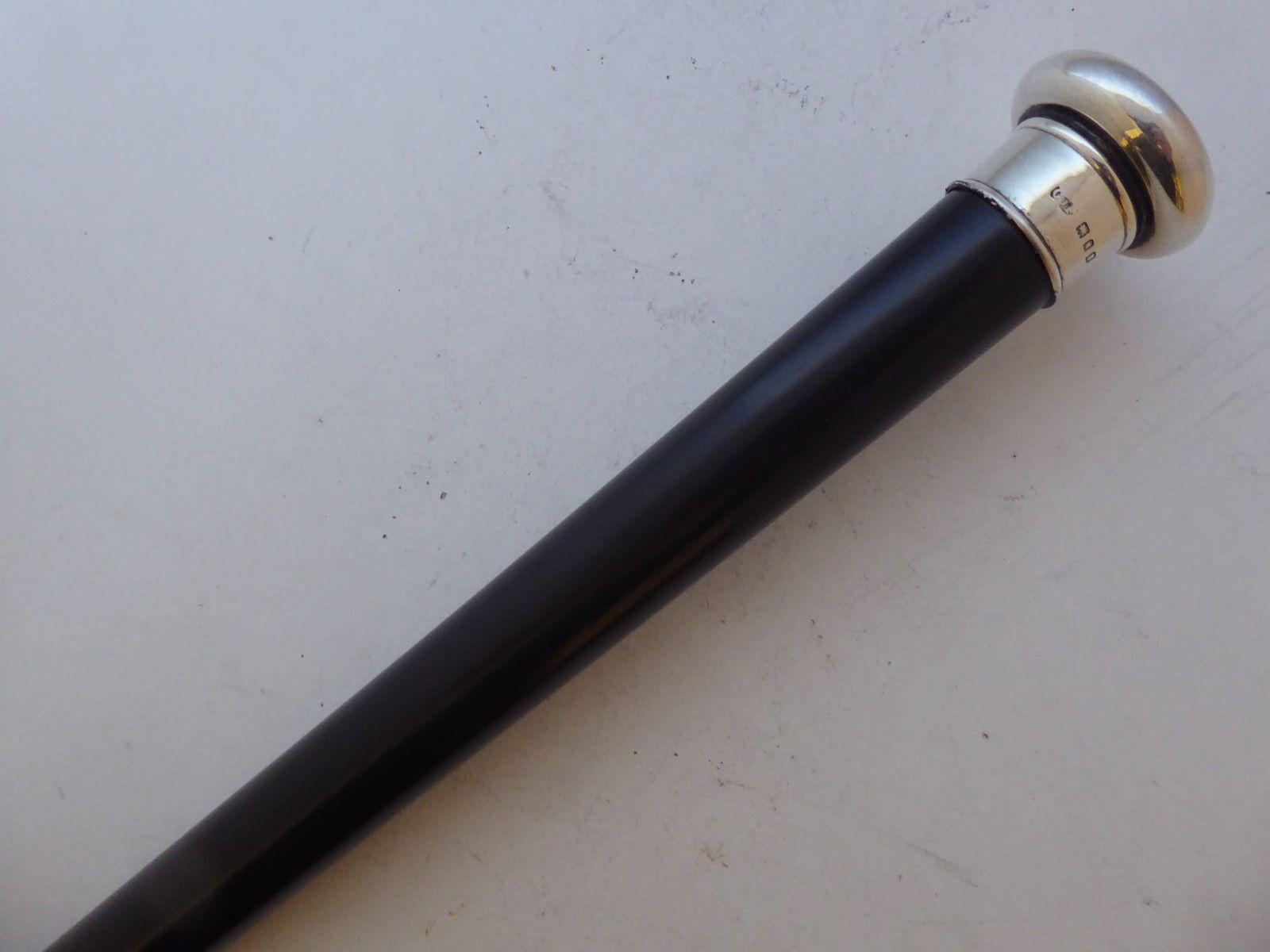 Walking Stick Cane London 1920 Hallmarked Silver Pommel Ebony Shaft Charles James Fox