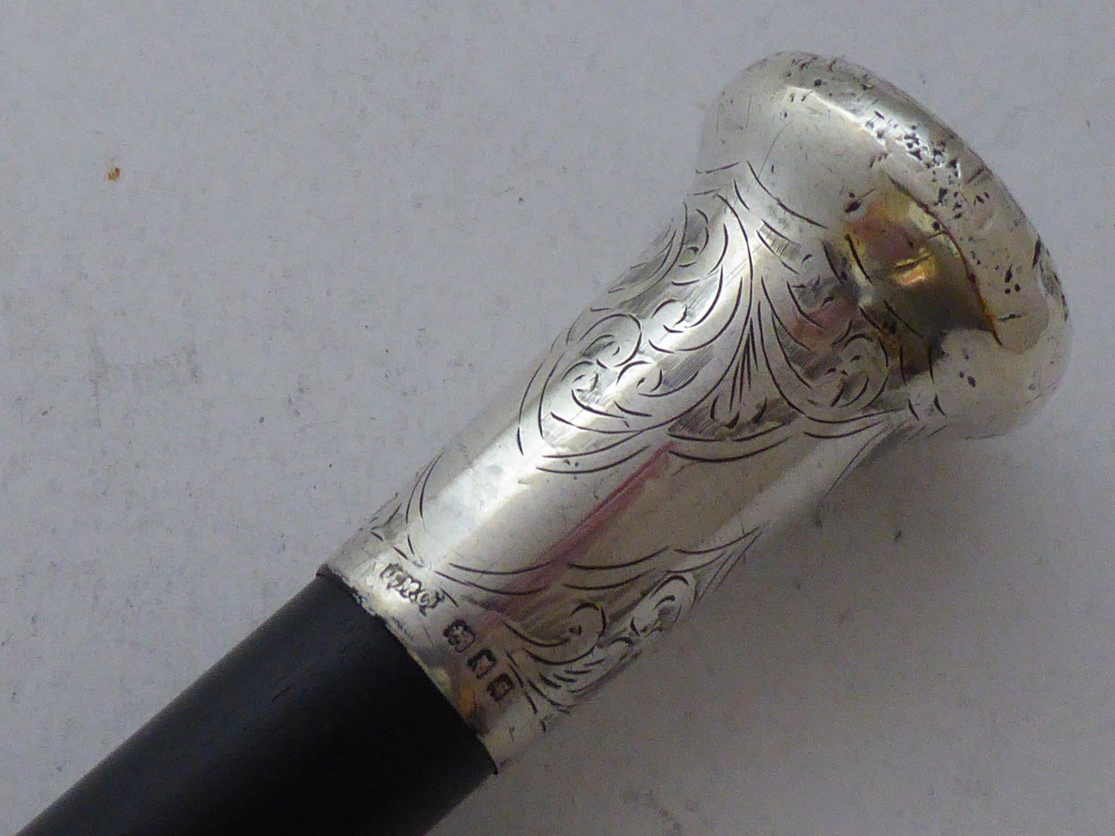 Walking Stick Cane London 1922 Hallmarked Solid Silver Pommel Ebony Wood Shaft