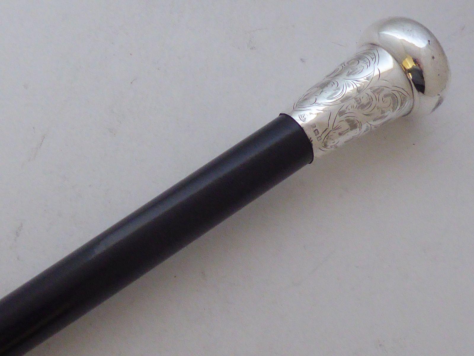 Walking Stick Cane London 1925 Hallmarked Solid Silver Pommel Ebony Wood Shaft