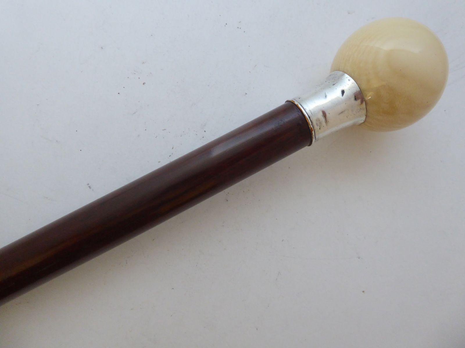 Walking Stick Cane Snakewood 1891 Hallmarked Silver Collar Tagua Nut Pommel