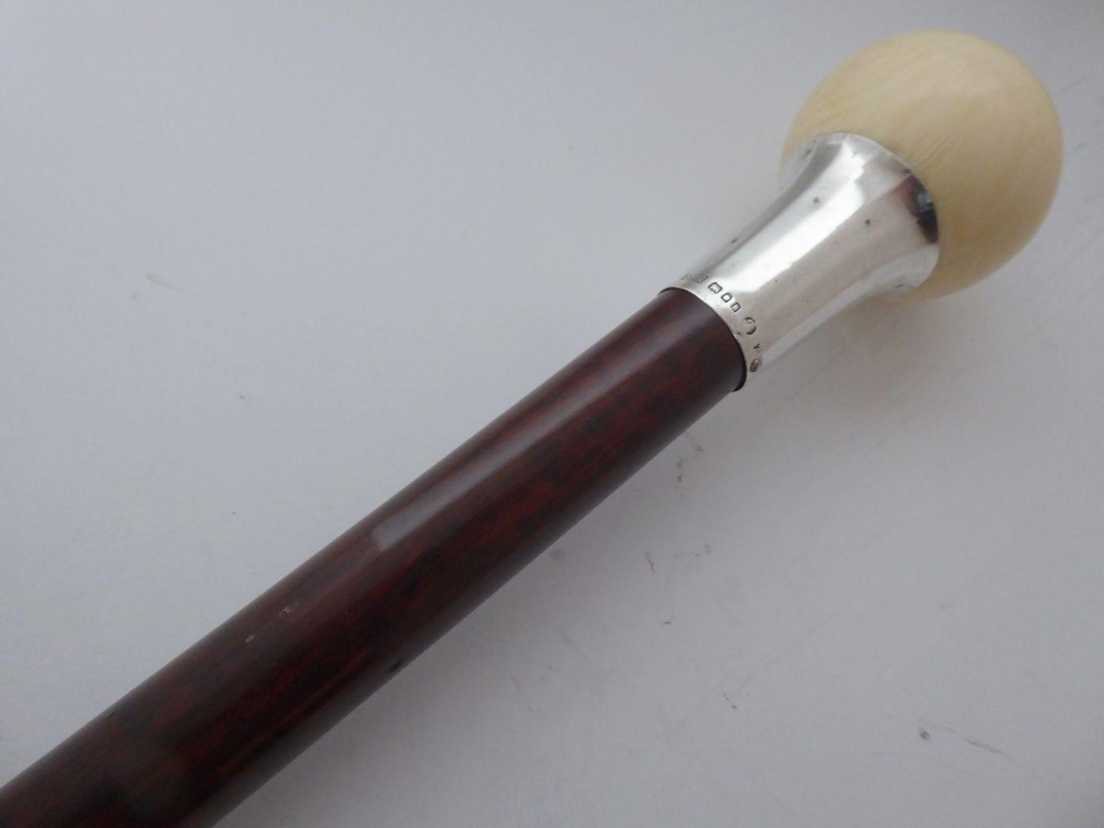 Walking Stick Cane Snakewood 1925 Hallmarked Silver Collar Tagua Nut Pommel