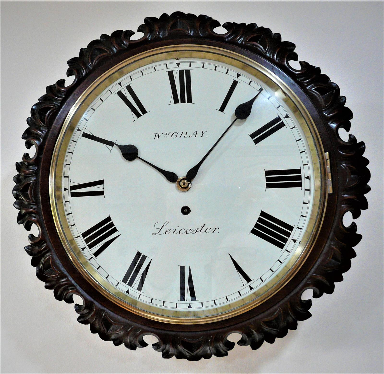 Wall Clock: Fabulous 12” English Carved Fusee Dial Timepiece by William Gray 1844