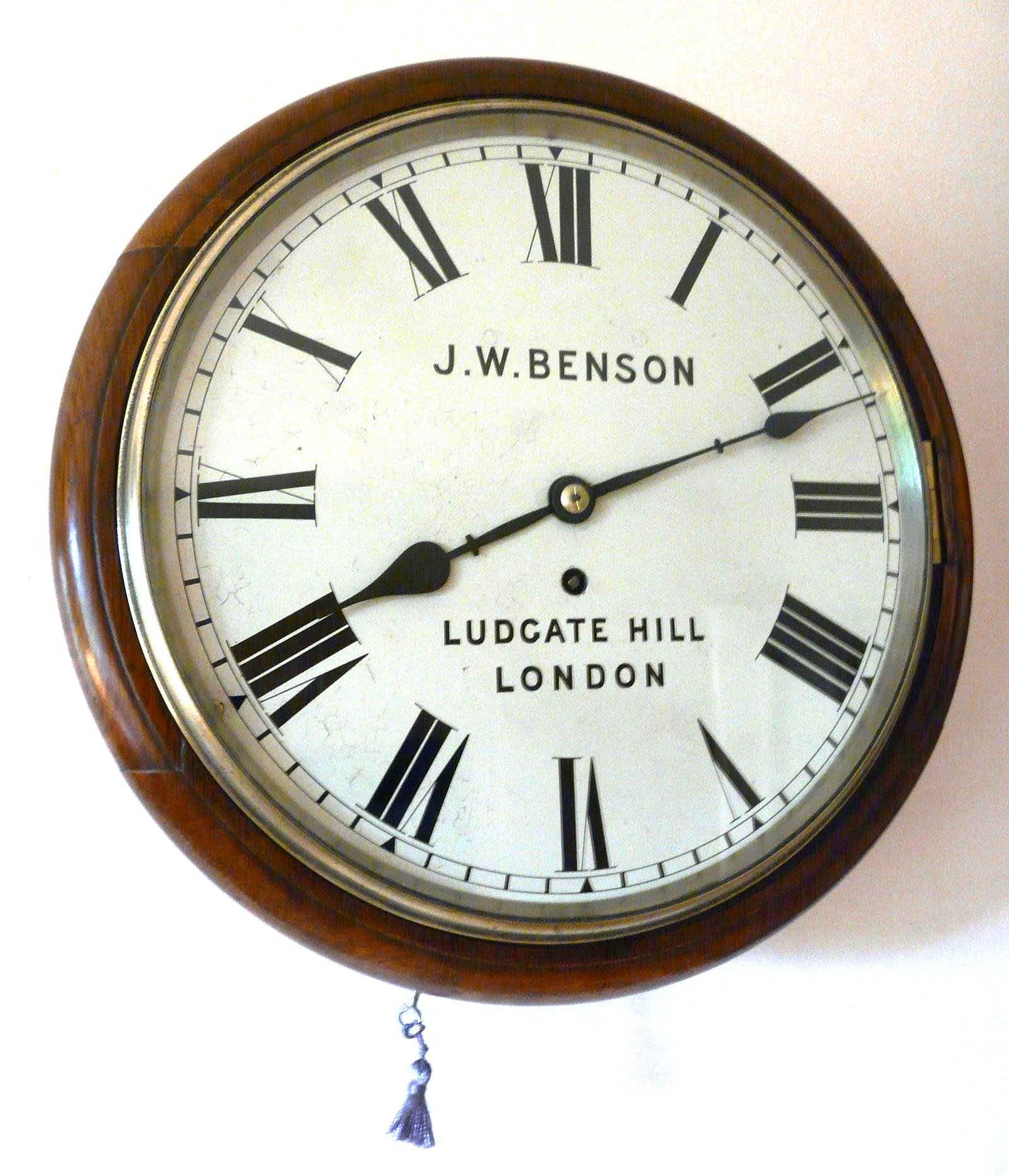 Wall Clock: Wonderful 12” English Fusee Dial Clock with Scarce ‘Passing Strike’ by James W. Benson 1880 (1 of 12)