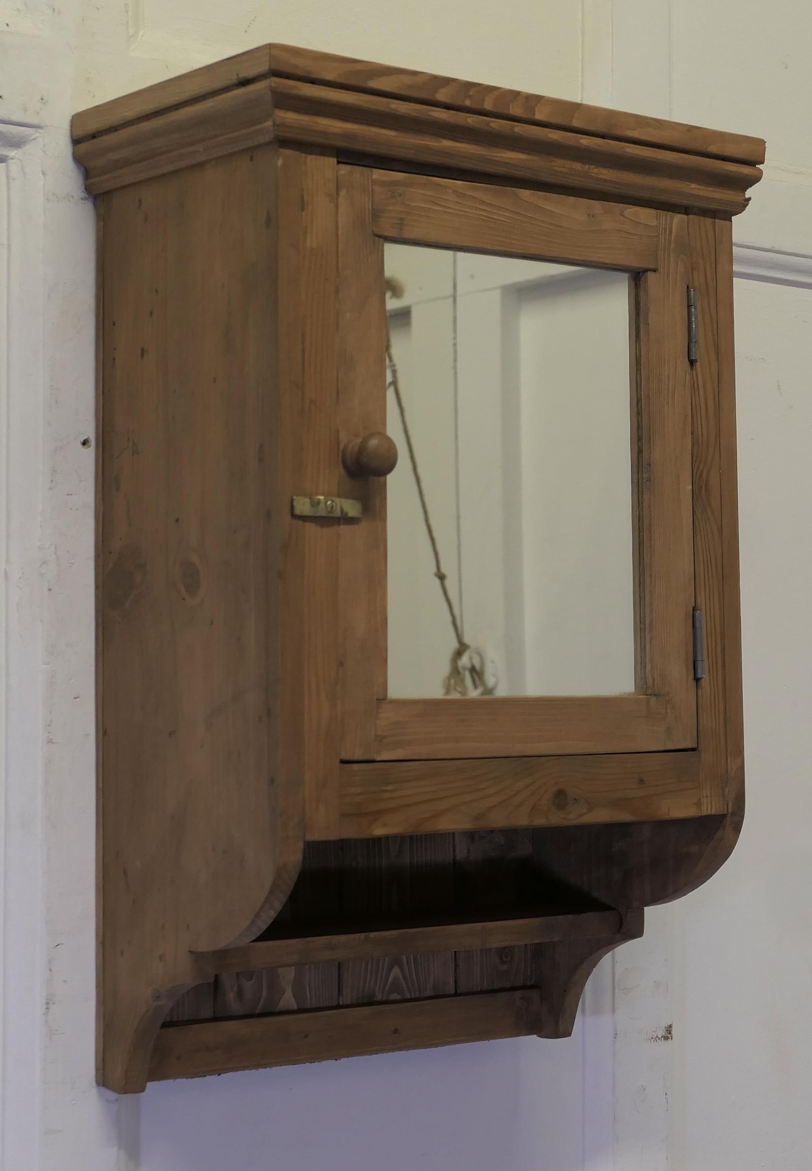 Wall Hanging Mirrored Pine Cloakroom or Bathroom Cupboard