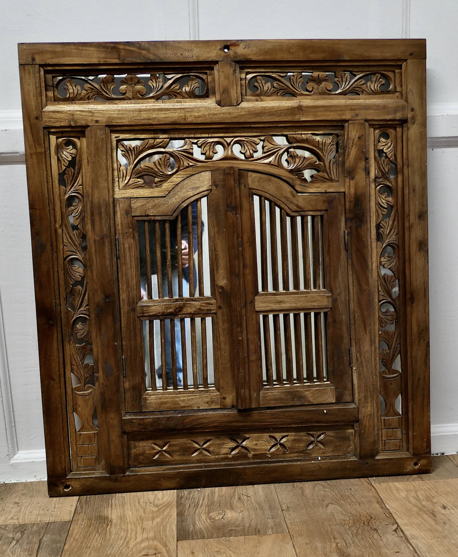 Wall Mirror Concealed by Heavy Carved Teak Door Shutters