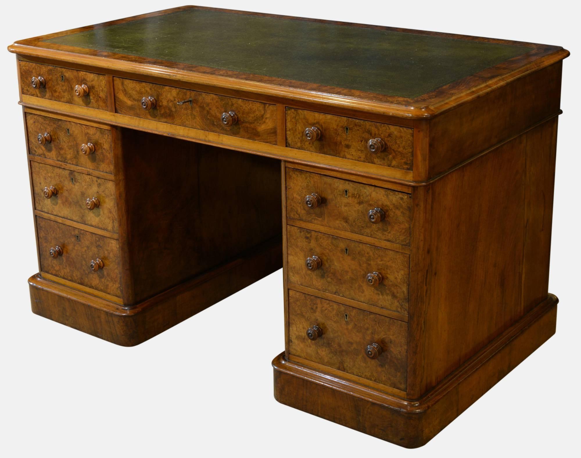 Walnut 9 Drawer Pedestal Desk c.1860 (1 of 1)