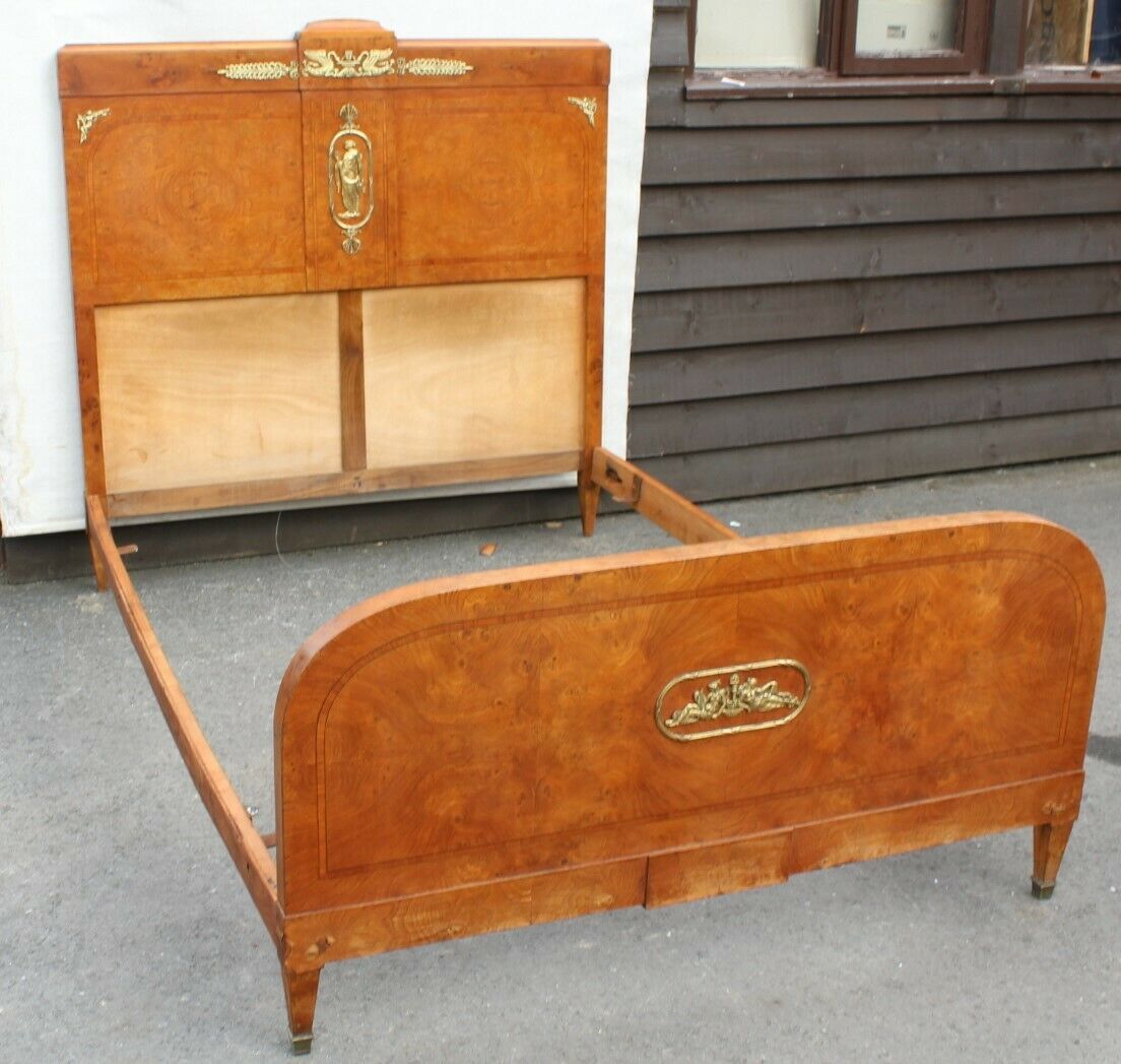 Walnut Bed Frame with Good Brass Decoration c.1910