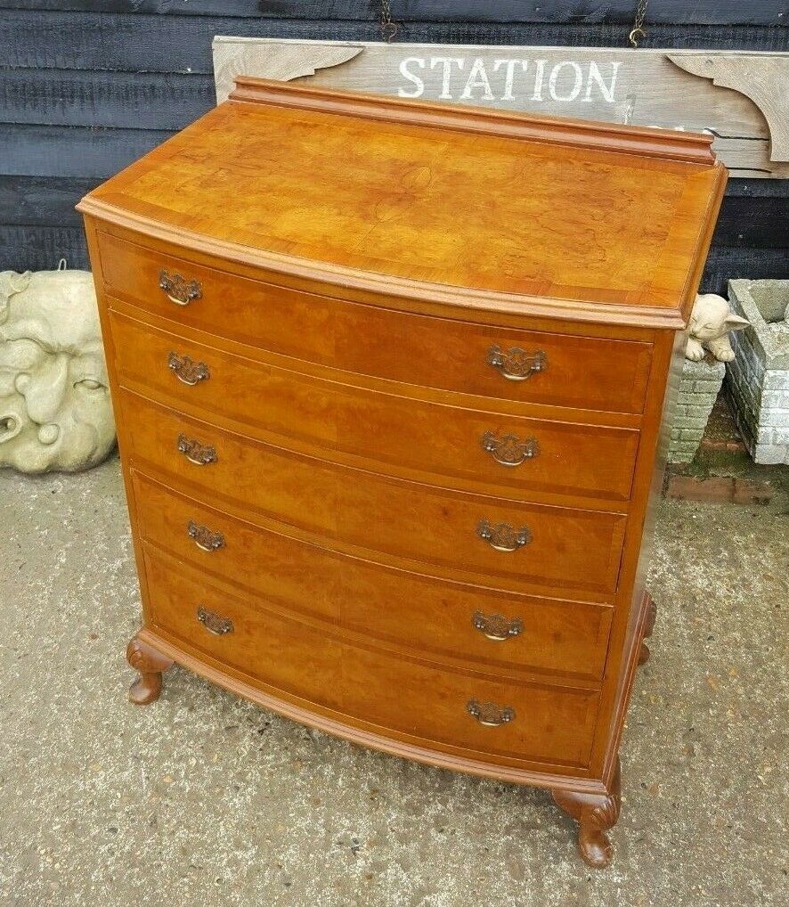 Walnut Bow Front Chest of 5 Drawers