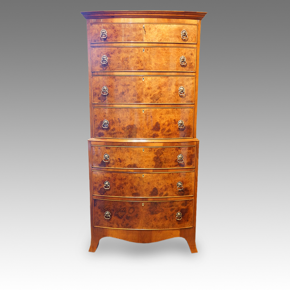 Walnut Bow Fronted Tallboy Chest C.1920 (1 of 1)