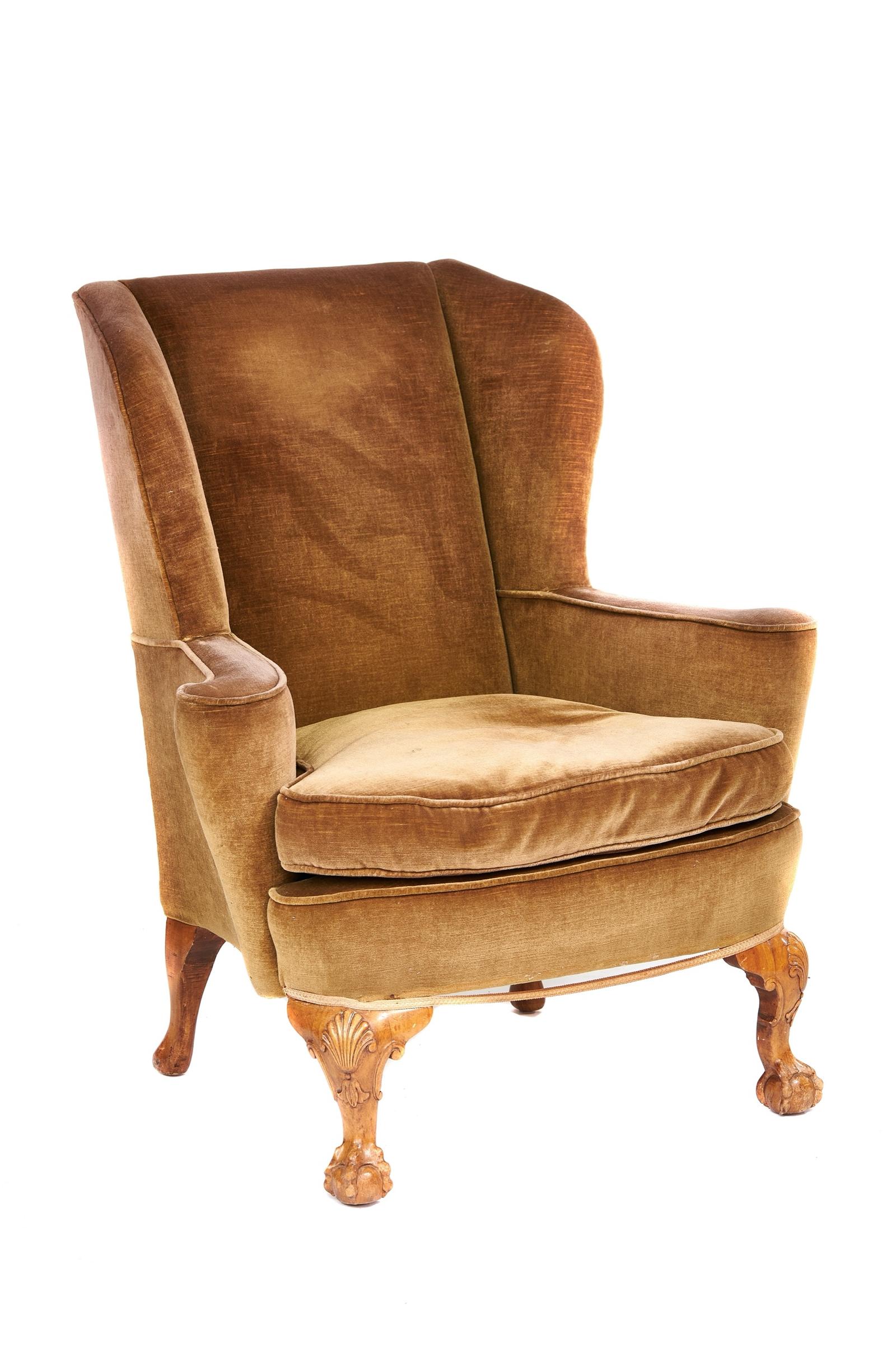 Walnut Carved Wing Back Armchair Georgian Style c.1920