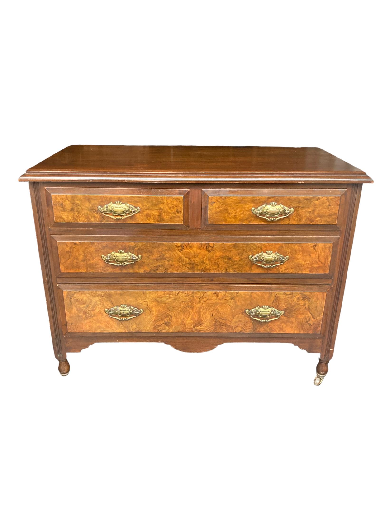 Walnut Chest of Drawers on Original Casters English Early 20th Century