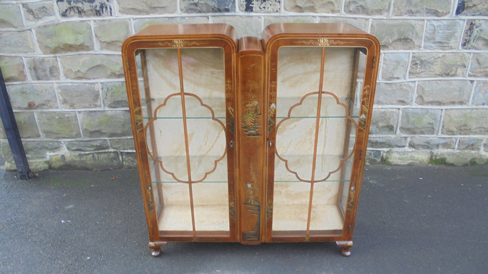 Walnut & Chinoiserie Decorated China Display Cabinet c.1920