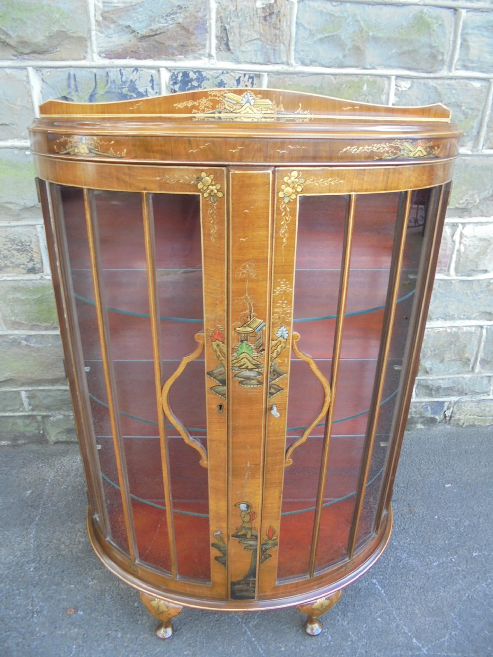 Walnut & Chinoiserie Decorated Display Cabinet c.1920 (1 of 1)