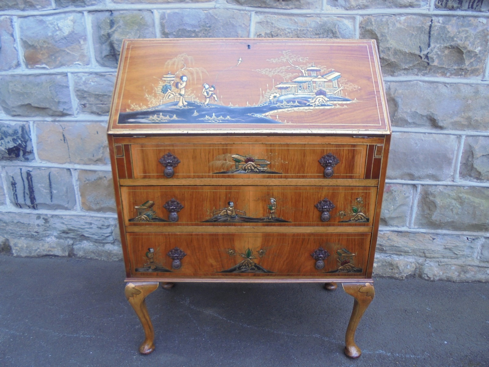 Walnut Chinoiserie Decorated Writing Bureau c.1920