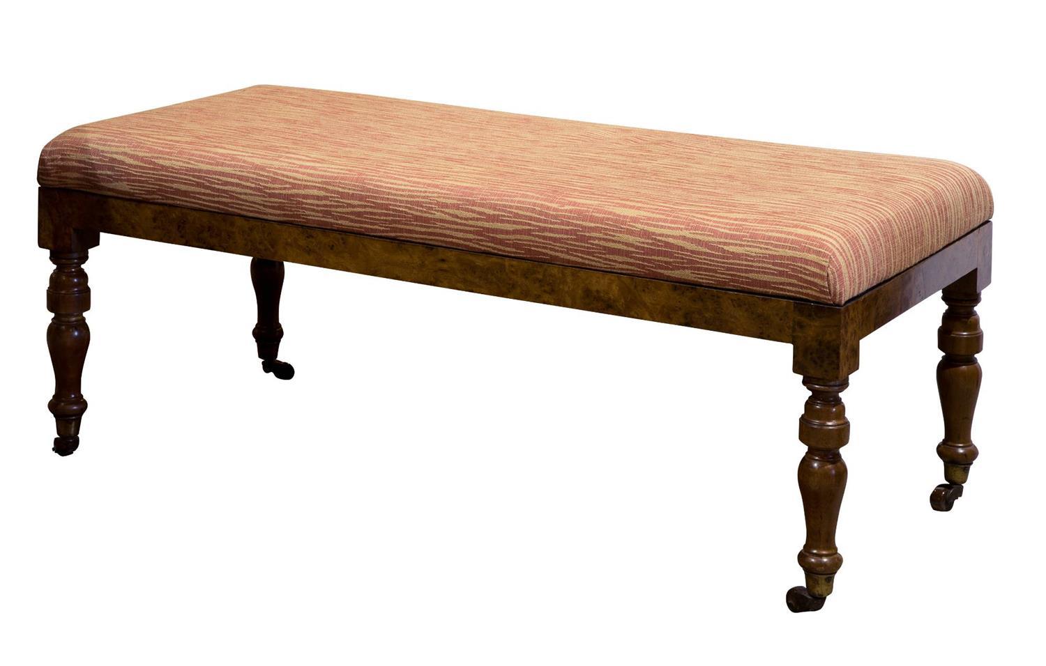 Walnut Framed, Long Upholstered Stool (1 of 1)
