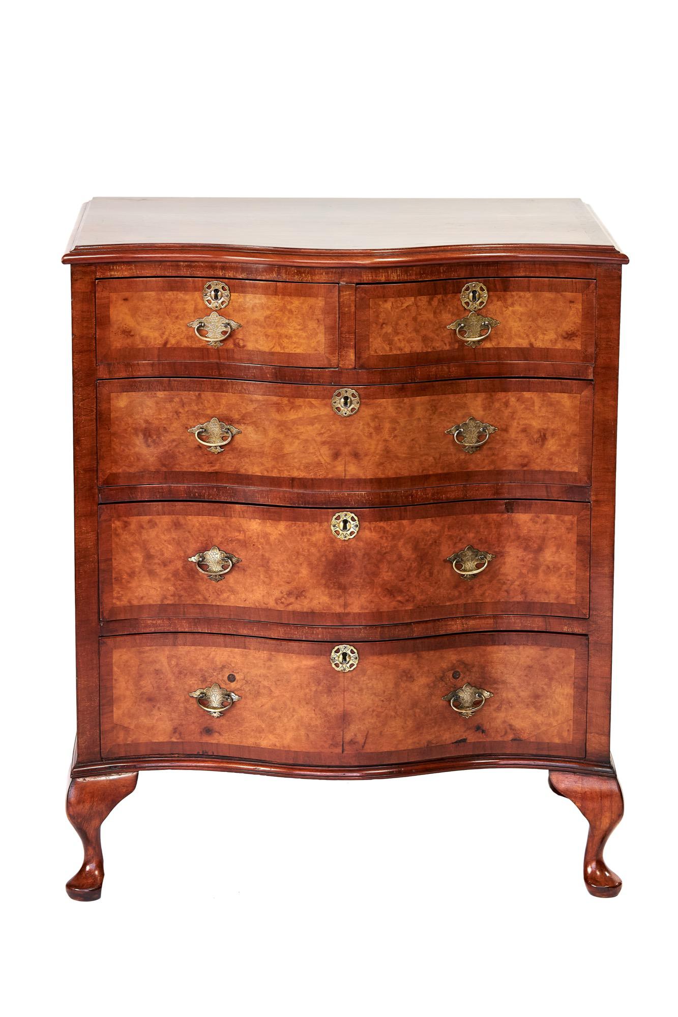Walnut Georgian Revival Serpentine Front 5 Drawer Chest c.1920 (1 of 6)