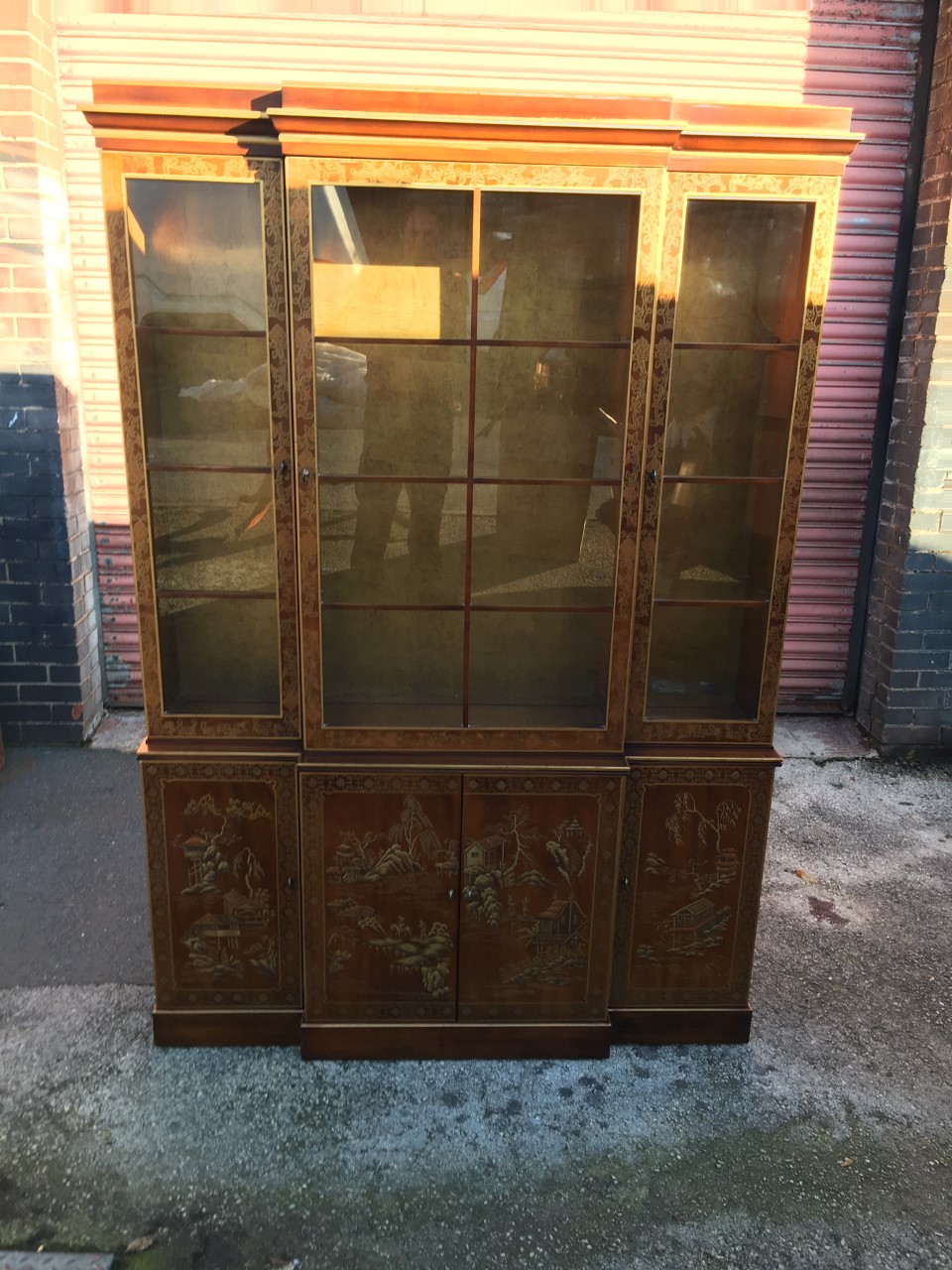 Walnut & Lacquered Chinoiserie Breakfront Library Bookcase (1 of 10)