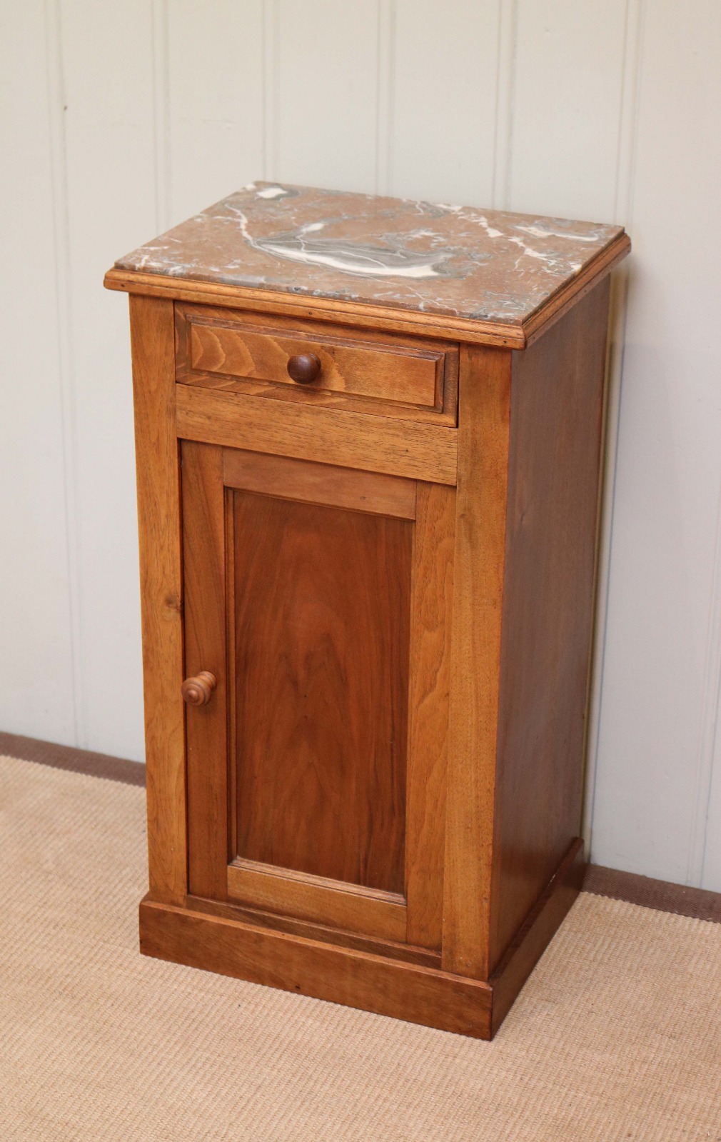 Walnut Marble Top Bedside Cabinet C.1900 (1 of 1)